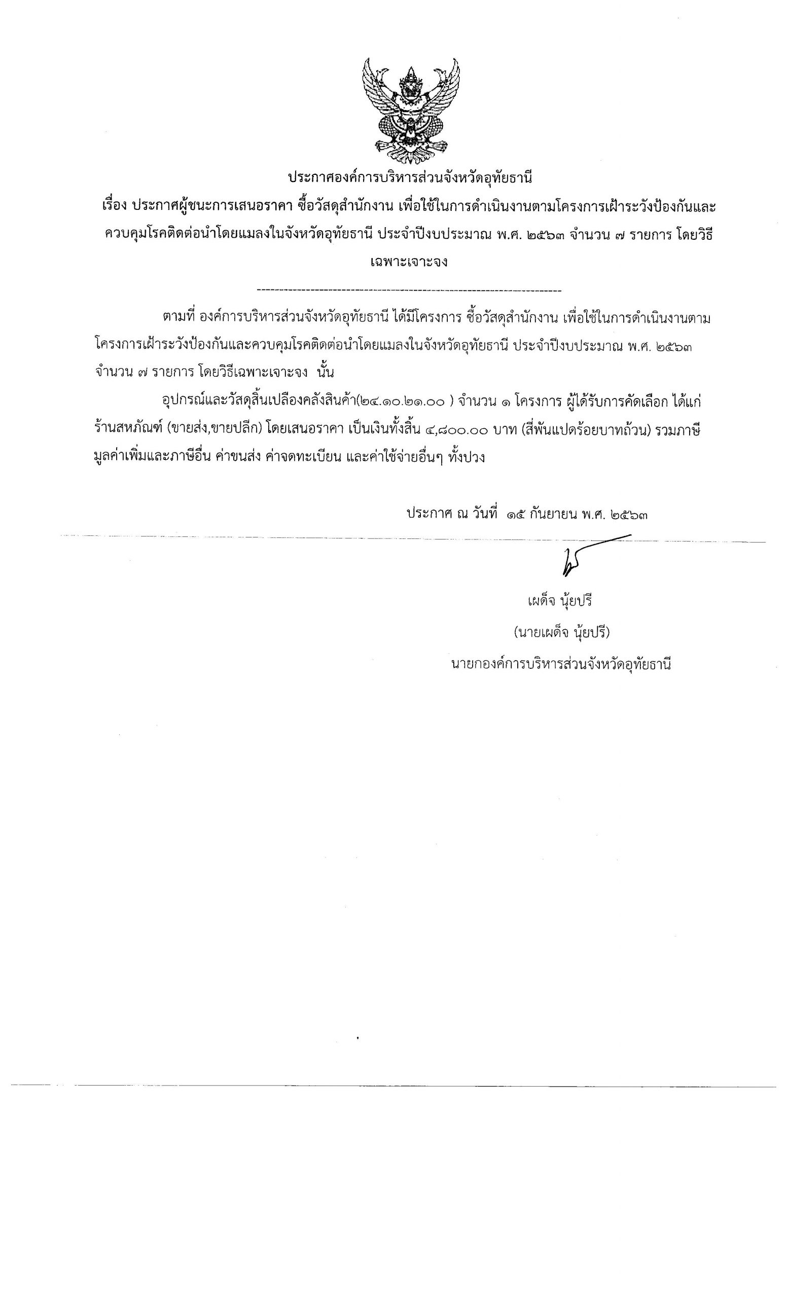 ประกาศผลผู้ชนะฯประกาศองค์การบริหารส่วนจังหวัดอุทัยธานี เรื่อง ซื้อวัสดุสำนักงาน เพื่อใช้ในการดำเนินงานตามโครงการเฝ้าระวังป้องกันและควบคุมโรคติดต่อนำโดยแมลงในจังหวัดอุทัยธานี ประจำปีงบประมาณ พ.ศ.2563 จำนวน 7 รายการ โดยวิธีเฉพาะเจาะจง Posted on 15 กันยายน 256314 ตุลาคม 2020 by admin เปิดอ่านดาวน์โหลด
