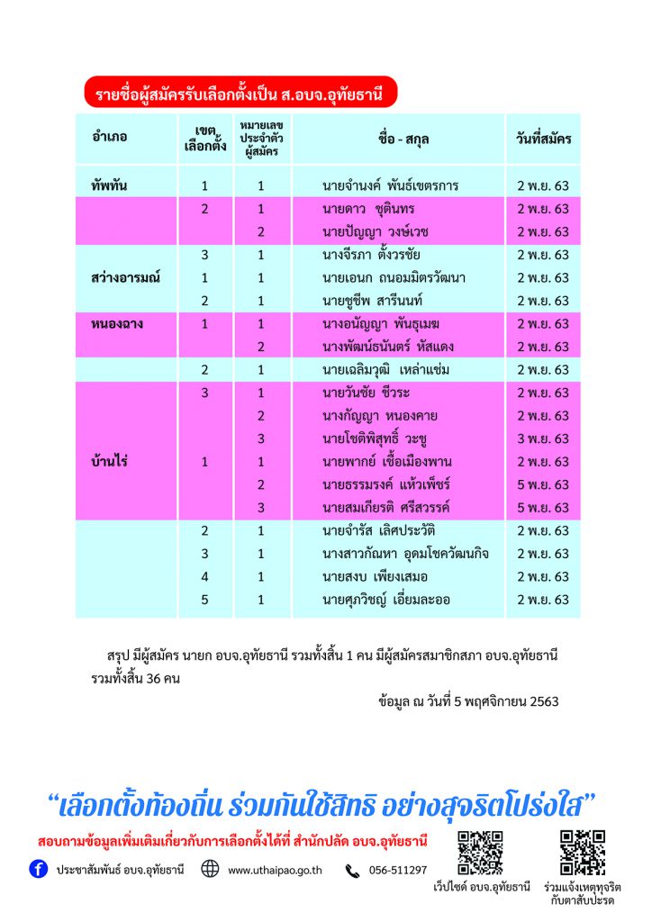 การเลือกตั้งสมาชิกสภาองค์การบริหารส่วนจังหวัด และ นายกองค์การบริหารส่วนจังหวัด, ข่าวประชาสัมพันธ์/ประกาศ, ศูนย์ข้อมูลข่าวสาร อบจ.อุทัยธานีรายชื่อผู้ลงสมัครรับเลือกตั้งเป็น ส.อบจ. และนายก อบจ.อุทัยธานี ณ วันที่ 5 พฤศจิกายน 2563 Posted on 5 พฤศจิกายน 25636 พฤศจิกายน 2020 by admin รายชื่อผู้ลงสมัครรับเลือกตั้งเป็น ส.อบจ. และนายก อบจ.อุทัยธานี ณ วันที่ 5 พฤศจิกายน 2563