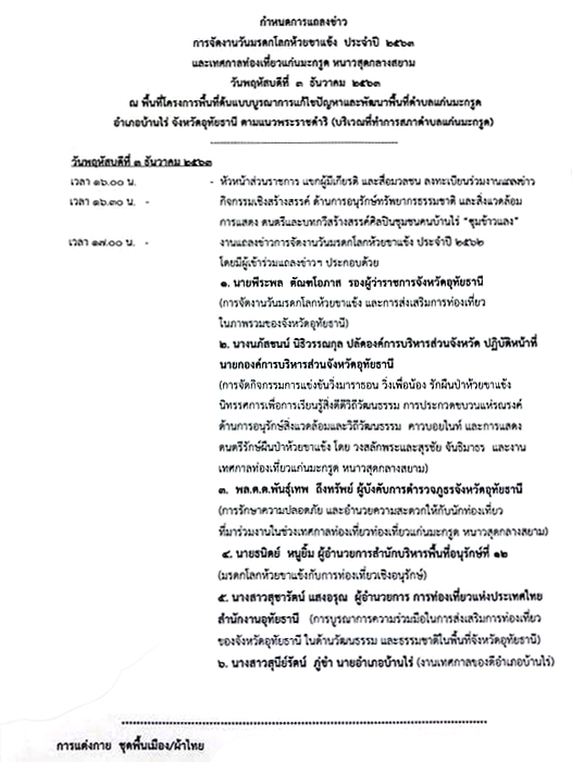 ขอเรียนเชิญสื่อมวลชนร่วมทำข่าวประชาสัมพันธ์งานแถลงข่าวงานวันมรดกโลกห้วยขาแข้ง ประจำปี 2563 และงานเทศกาลท่องเที่ยวแก่นมะกรูด หนาวสุดกลางสยาม ในวันพฤหัสบดีที่ 3 ธันวาคม 2563 เวลา 16.00 น. ณ พื้นที่โครงการพื้นที่ต้นแบบบูรณาการแก้ไขปัญหาและพัฒนาพื้นที่ตำบลแก่นมะกรูด อำเภอบ้านไร่ จังหวัดอุทัยธานี ตามแนวพระราชดำริ (บริเวณที่ทำการสภาตำบลแก่นมะกรูด)