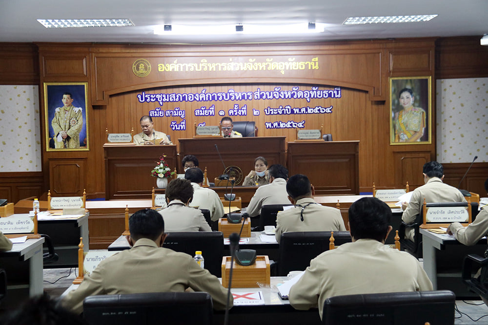 วันนี้ (9 มี.ค. 64) เวลา 10.00 น. ณ ห้องประชุมองค์การบริหารส่วนจังหวัดอุทัยธานี นายปภาวิชญ์ บุษวะดี ประธานสภาองค์การบริหารส่วนจังหวัดอุทัยธานี เปิดประชุมสภาฯ สมัยสามัญ สมัยที่ 1 ครั้งที่ 2 เรื่องรับรองรายงานการประชุมสภาองค์การบริหารส่วนจังหวัดอุทัยธานี สมัยสามัญ สมัยที่ 1 ครั้งที่ 1 ประจำปี 2564 เมื่อวันที่ 25 มกราคม 2564 พร้อมให้นายบัญชา โพธิ์มี สมาชิกสภาองค์การบริหารส่วนจังหวัดอุทัยธานี เขต 3 อำเภอลานสัก กล่าวปฏิญาณตนเข้ารับหน้าที่ และขออนุมัติโอนเงินงบประมาณรายจ่ายประจำปีงบประมาณ 2564 เพื่อโอนไปตั้งจ่ายเป็นรายการใหม่ โดยมีนายเผด็จ นุ้ยปรี นายกองค์การบริหารส่วนจังหวัดอุทัยธานี พร้อมสมาชิกสภาองค์การบริหารส่วนจังหวัดอุทัยธานี หัวหน้าส่วนราชการ และข้าราชการ เข้าร่วมประชุมอย่างพร้อมเพรียงกัน