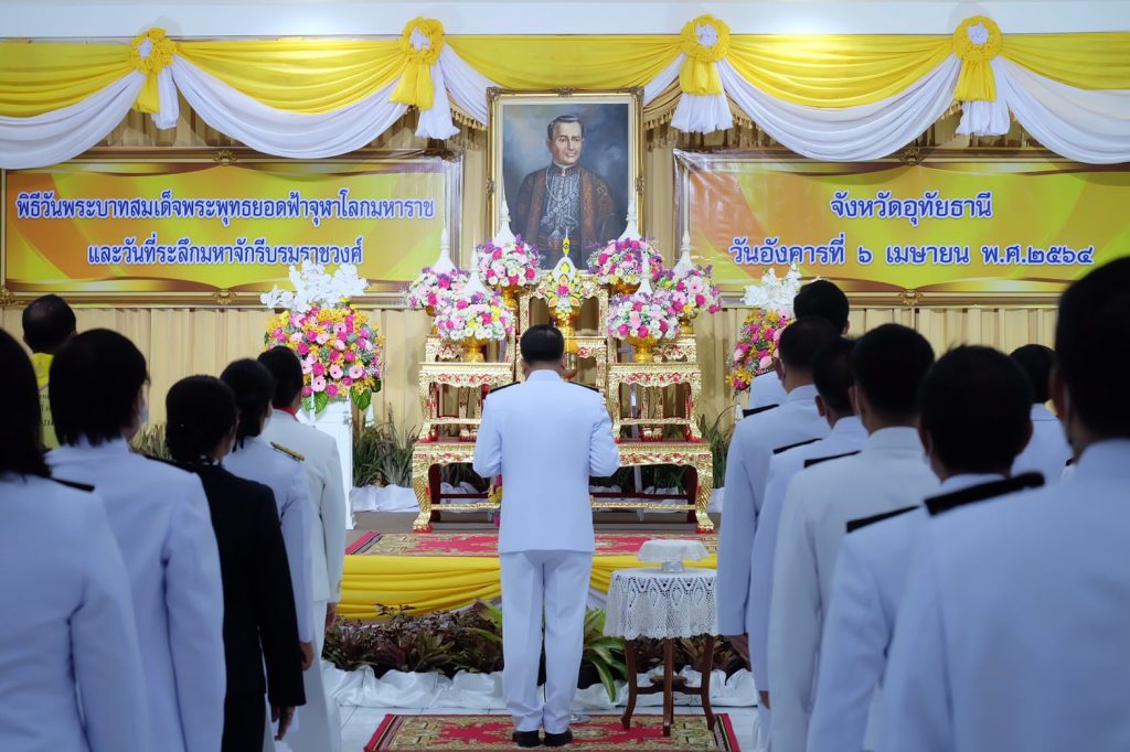 นายณรงค์ รักร้อย ผู้ว่าราชการจังหวัดอุทัยธานี เป็นประธานในพิธีวันพระบาทสมเด็จพระพุทธยอดฟ้าจุฬาโลกมหาราช และวันที่ระลึกมหาจักรีบรมราชวงศ์ ถวายราชสักการะ และถวายราชสดุดีพระบาทสมเด็จพระพุทธยอดฟ้าจุฬาโลกมหาราช เพื่อเป็นการน้อมรำลึกถึงพระมหากรุณาธิคุณ และแสดงความกตัญญูกตเวทิตาคุณต่อพระองค์ โดยมี นายอลงกต วรกี และนายพีระพล ตัณฑโอภาส รองผู้ว่าราชการจังหวัดอุทัยธานี หัวหน้าส่วนราชการ ศาล ทหาร ตำรวจ เหล่ากาชาด ภาครัฐวิสาหกิจ และภาคเอกชน ทั้งนี้องค์การบริหารส่วนจังหวัดอุทัยธานี โดยนายเสวก พุทธรักษา รองนายกองค์การบริหารส่วนจังหวัดร่วมพิธีอย่างพร้อมเพรียงกัน ณ อาคารสำนักงานเหล่ากาชาดจังหวัดอุทัยธานี อำเภอเมือง เมื่อวันที่ 6 เมษายน 2564