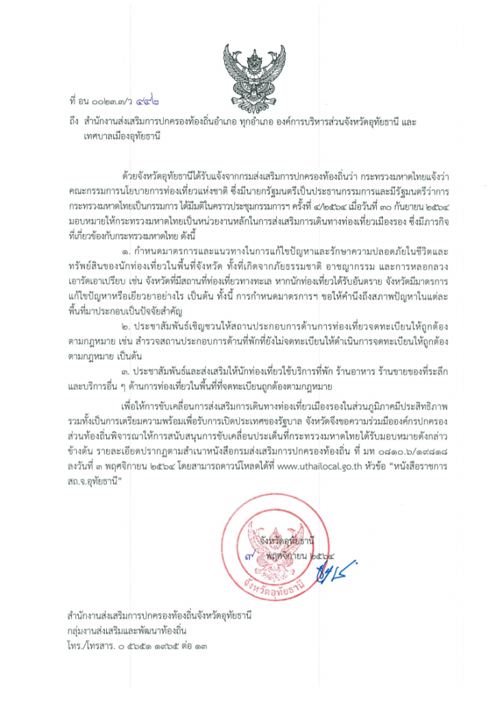 ข่าวประชาสัมพันธ์, ข่าวประชาสัมพันธ์/ประกาศการขับเคลื่อนการส่งเสริมการเดินทางท่องเที่ยวเมืองรองในส่วนภูมิภาคมีประสิทธิภาพรวมทั้งเป็นการเตรียมความพร้อมเพื่อรับการเปิดประเทศของรัฐบาล Posted on 12 พฤศจิกายน 256412 พฤศจิกายน 2021 by UthaiThani_Admin การขับเคลื่อนการส่งเสริมการเดินทางท่องเที่ยวเมืองรองในส่วนภูมิภาคมีประสิทธิภาพรวมทั้งเป็นการเตรียมความพร้อมเพื่อรับการเปิดประเทศของรัฐบาล