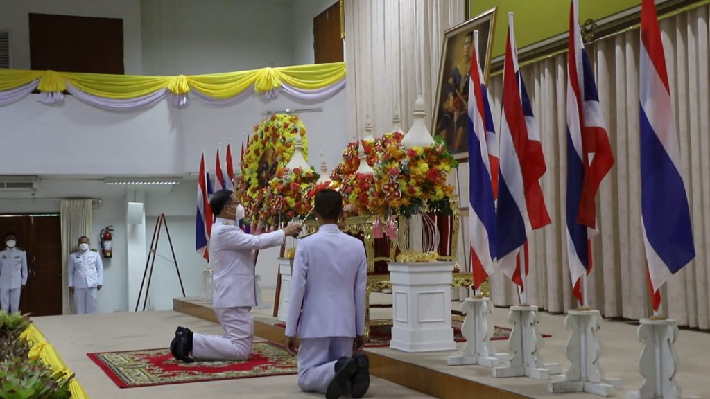 พิธีวันคล้ายวันสวรรคตสมเด็จพระนเรศวรมหาราช วางพวงมาลาถวายราชสักการะ และกล่าวถวายราชสดุดี ต่อเบื้องหน้าพระบรมสาทิสลักษณ์ สมเด็จพระนเรศวรมหาราช