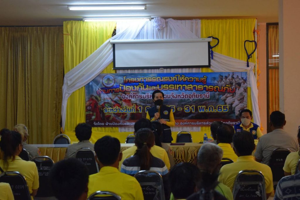 นางสมพร โต๋วสัจจา รองนายกองค์การบริหารส่วนจังหวัดอุทัยธานีเป็นประธานเปิดการฝึกอบรมโครงการรณรงค์ให้ความรู้ด้านการป้องกันและบรรเทาสาธารณภัย องค์การบริหารส่วนจังหวัดอุทัยธานี ณ องค์การบริหารส่วนตำบลน้ำรอบ ตำบลน้ำรอบ อำเภอลานสัก จังหวัดอุทัยธานี เมื่อวันที่ 9 พฤษภาคม 2565