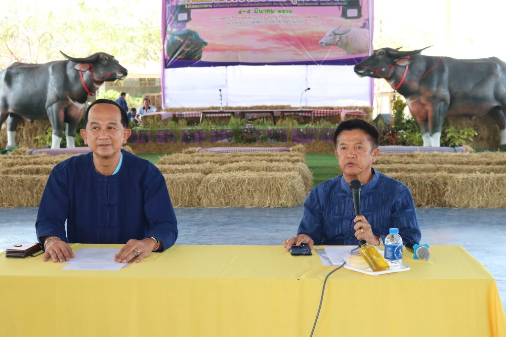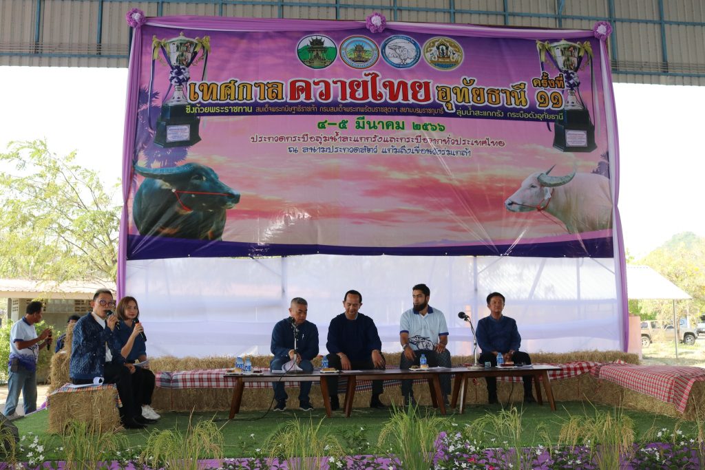 นายอลงกต วรกี รองผู้ว่าราชการจังหวัดอุทัยธานี นายเผด็จ นุ้ยปรี นายกองค์การบริหารส่วนจังหวัดอุทัยธานี นายสมพล ไวปัญญา ปศุสัตว์จังหวัดอุทัยธานี นายกฤษฎา ซักเซ็ค นายกสมาคมพัฒนาพันธุ์ควายไทย ร่วมกันแถลงข่าวการจัดงาน “เทศกาลควายไทยอุทัยธานี” ครั้งที่ 11 ที่จะจัดขึ้นในวันที่ 4 – 5 มีนาคม 2566 ณ บริเวณเขื่อนวังร่มเกล้า จังหวัดอุทัยธานี โดยมี ส่วนราชการ สมาคมพัฒนาพันธุ์ควายไทย องค์กรปกครองส่วนท้องถิ่น หน่วยงานภาครัฐ ภาคเอกชน และประชาชน เข้าร่วมงาน ณ เขื่อนวังร่มเกล้า อำเภอเมืองอุทัยธานี จังหวัดอุทัยธานี เมื่อวันที่ 27 กุมภาพันธ์ 2566