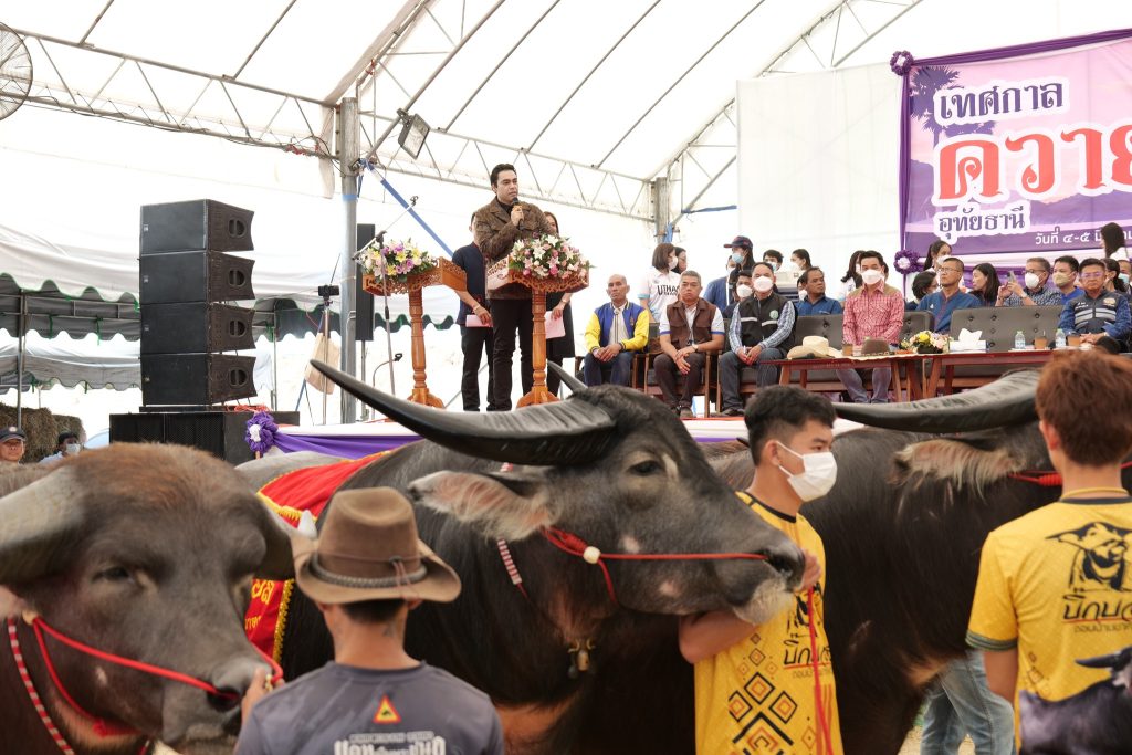 รมช.กระทรวงเกษตรและสหกรณ์ เป็นประธานเปิดงาน “เทศกาลควายไทย อุทัยธานี” ครั้งที่ 11 ยิ่งใหญ่ เมื่อเวลา 10.30 น. วันที่ 5 มีนาคม 2566 ที่บริเวณเขื่อนวังร่มเกล้า จังหวัดอุทัยธานี นางสาวมนัญญา ไทยเศรษฐ์ รัฐมนตรีช่วยว่าการกระทรวงเกษตรและสหกรณ์ เป็นประธานเปิดงาน “เทศกาลควายไทย อุทัยธานี” ครั้งที่ 11 โดยมี นายพีระพล ตัณฑโอภาส รองผู้ว่าราชการจังหวัดอุทัยธานี นายเจเศรษฐ์ ไทยเศรษฐ์ สมาชิกสภาผู้แทนราษฎร เขต 1 จังหวัดอุทัยธานี ให้การต้อนรับ โดยมีนายเผด็จ นุ้ยปรี นายกองค์การบริหารส่วนจังหวัดอุทัยธานี กล่าววัตถุประสงค์การจัดงานฯ นายกฤษฎา ซักเซ็ค นายกสมาคมพัฒนาพันธุ์ควายไทย นายอำเภอ ส่วนราชการ องค์กรปกครองส่วนท้องถิ่น เกษตรกร และประชาชน เข้าร่วมงาน งาน”เทศกาลควายไทย อุทัยธานี” ครั้งที่ 11 มีวัตถุประสงค์ เพื่อให้เกษตรกรได้พบปะ เรียนรู้ แลกเปลี่ยนความคิดเห็นระหว่างเกษตรกรด้วยกัน ปราชญ์ด้านกระบือ และผู้ทรงคุณวุฒิ ตลอดจนเพื่อการอนุรักษ์ และใช้ประโยชน์ พัฒนาปรับปรุงพันธุ์กระบือของชาวอุทัยธานีให้ดียิ่งขึ้นไป รวมทั้งสร้างมูลค่าเพิ่มจากกระบือสวยงาม ช่วยกระตุ้นการซื้อขายกระบือในจังหวัดอุทัยธานี ให้มีปริมาณเพิ่มมากขึ้น ทั้งยังส่งเสริมให้เกษตรกรหันมาสนใจในการประกอบอาชีพการเลี้ยงกระบือ อนุรักษ์และใช้ประโยชน์จากกระบือมากขึ้น โดยมีกำหนดการจัดงาน”เทศกาลควายไทยอุทัยธานี” ครั้งที่ 11 ในวันที่4 – 5 มีนาคม 2566 ณ บริเวณเขื่อนวังร่มเกล้า จังหวัดอุทัยธานี ภายในงานจัดให้มีการประกวดกระบือ ประกอบด้วยการประกวดกระบือลุ่มน้ำสะแกกรัง (เฉพาะกระบือในพื้นที่จังหวัดอุทัยธานี) จำนวน 20 รุ่น การประกวดกระบือทั่วไป จำนวน 20 รุ่น และการประกวดกระบือแกรนด์แชมป์ (Grand Champion) ชิงถ้วยพระราชทาน สมเด็จพระกนิษฐาธิราชเจ้า กรมสมเด็จพระเทพรัตนราชสุดาฯ สยามบรมราชกุมารี จำนวน 4 ถ้วย ประกอบด้วย กระบือลุ่มน้ำสะแกกรัง เพศผู้ เพศเมีย และกระบือทั่วไป เพศผู้ เพศเมีย ตามลำดับ นอกจากนั้นภายในงานยังจัดให้มีการแสดงนิทรรศการที่เกี่ยวข้องกับกระบือ การจำหน่ายสินค้าปศุสัตว์ และสินค้า OTOP