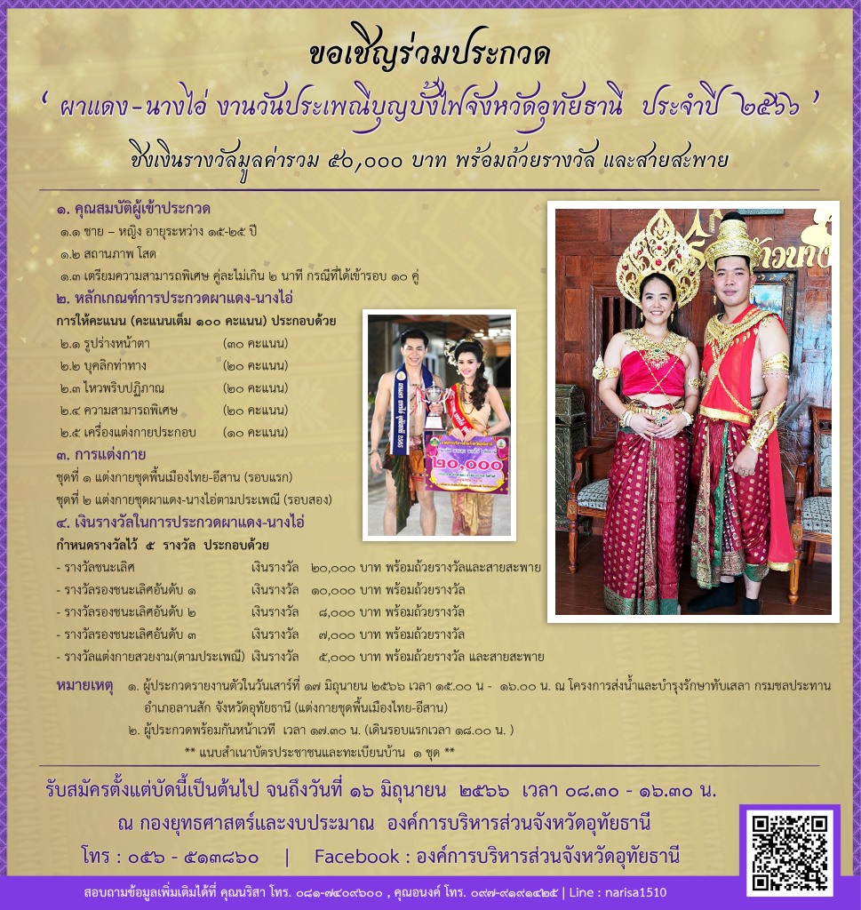 ข่าวประชาสัมพันธ์/ประกาศใบสมัคร ผาแดง- นางไอ่ งานวันประเพณีบุญบั้งไฟจังหวัดอุทัยธานี ประจำปี 2566 Posted on 25 พฤษภาคม 256631 พฤษภาคม 2023 by yammy ใบสมัครประกวดผาแดง-นางไอ่ (pdf)ดาวน์โหลด ใบสมัครประกวดผาแดง-นางไอ่ (word)ดาวน์โหลด
