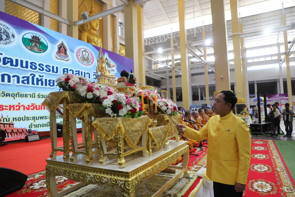 วันที่ 28 มิ.ย. 2566 ณ หอประชุมพระสุธรรมยานเถระ วัดจันทาราม (ท่าซุง) อำเภอเมืองอุทัยธานี จังหวัดอุทัยธานี นายธีรพัฒน์ คัชมาตย์ ผู้ว่าราชการจังหวัดอุทัยธานี เป็นประธานในพิธีบวงสรวง พิธีเจริญพระพุทธมนต์ ตักบาตรพระสงฆ์ และพิธีแสดงตนเป็นพุทธมามกะงาน”วัฒนธรรม ศาสนา วิทยาศาสตร์ สร้างโอกาสให้เยาวชนจังหวัดอุทัยธานี” โดยมี พระครูอุทัยสุตกิจ รองเจ้าคณะจังหวัดอุทัยธานี ประธานสงฆ์ พระครูปลัดสมนึก สุธมฺมถิรสทฺโธ เจ้าอาวาสวัดจันทาราม(วัดท่าซุง) คุณสมาน คุณากรไพบูลย์ศิริ เลขาธิการมูลนิธิเผยแผ่ศาสนาและพัฒนาคุณภาพชีวิต นายอลงกต วรกี รองผู้ว่าราชการจังหวัดอุทัยธานี ส่วนราชการ หน่วยงานภาครัฐ ภาคเอกชน ครู นักเรียน นักศึกษา และประชาชน ทั้งนี้องค์การบริหารส่วนจังหวัดอุทัยธานี โดยมีนางไพรลิน นุ้ยปรี ที่ปรึกษานายกองค์การบริหารส่วนจังหวัด เข้าร่วมกิจกรรม