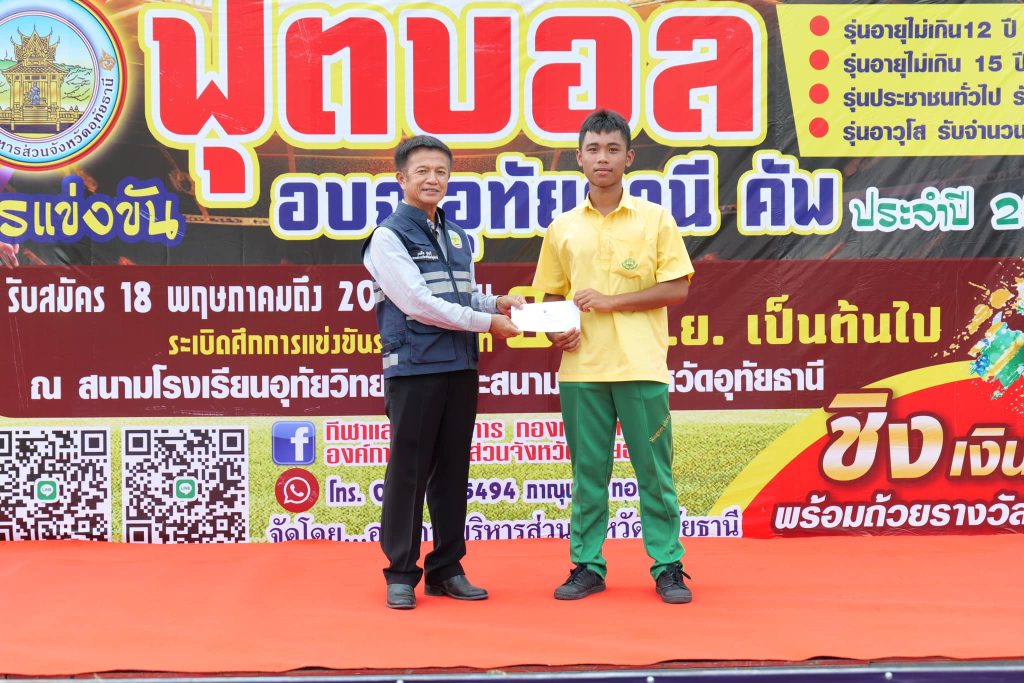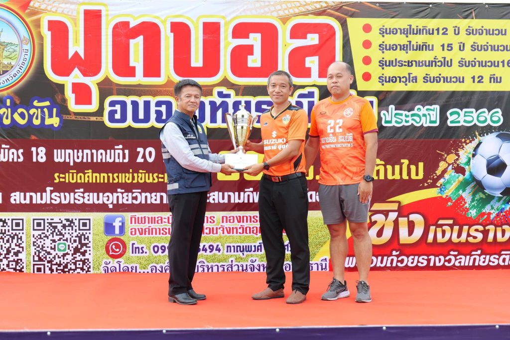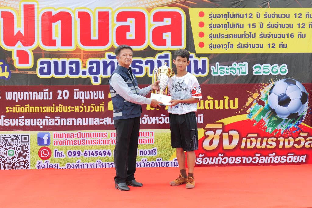 พิธีปิดการแข่งขันพร้อมมอบถ้วยรางวัลและเงินบำรุงทีมให้แก่ทีมที่ได้รับรางวัลทุกทีมในรายการฟุตบอล อบจ.อุทัยธานี คัพ ประจำปี 2566 ณ สนามฟุตบอลเทศบาลตำบลเขาบางแกรก อำเภอหนองฉาง