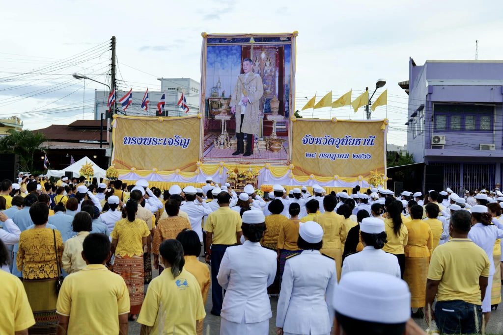 วันที่ 28 กรกฎาคม 2566 เวลา 18.00 น. ณ บริเวณวงเวียนหอนาฬิกา อำเภอเมืองอุทัยธานี จังหวัดอุทัยธานี นายเผด็จ นุ้ยปรี นายกองค์การบริหารส่วนจังหวัดอุทัยธานี ร่วมวางพานพุ่มเงิน พุ่มทอง ถวายเครื่องราชสักการะหน้าพระบรมฉายาลักษณ์ เพื่อเทิดพระเกียรติ แสดงความจงรักภักดี และสำนึกในพระมหากรุณาธิคุณพระบาทสมเด็จพระเจ้าอยู่หัวเนื่องในโอกาสเฉลิมพระชนมพรรษาพระบาทสมเด็จพระเจ้าอยู่หัว 71 พรรษา โดยมีหน่วยงานภาครัฐ ภาคเอกชน และภาคประชาชนร่วมในพิธีฯ