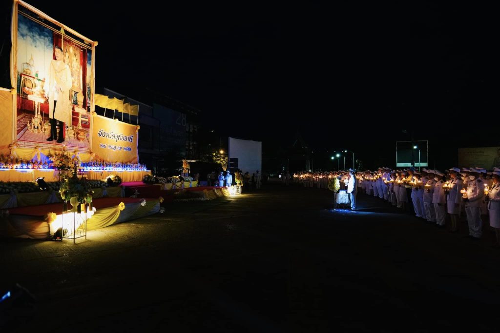 เวลา 19.19 น. นายธีรพัฒน์ คัชมาตย์ ผู้ว่าราชการจังหวัดอุทัยธานี ได้เดินทางมาเป็นประธานประกอบพิธีถวายเครื่องราชสักการะ และจุดเทียนถวายพระพรชัยมงคล กล่าวถวายราชสดุดี นำข้าราชการและประชาชนทุกหมู่เหล่า จุดเทียนถวายพระพรชัยมงคล พร้อมร่วมร้องเพลงสดุดีจอมราชา โดยพร้อมเพรียงกัน
