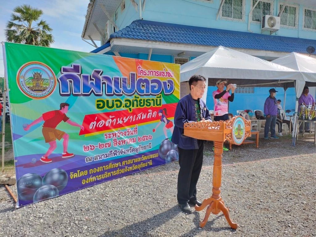 26 สิงหาคม 2566 กองการศึกษา ศาสนาและวัฒนธรรม อบจ.อุทัยธานี ได้จัดการแข่งขันเปตอง อบจ.อุทัยธานี ต้านยาเสพติด ระหว่างวันที่ 26-27 สิงหาคม 2566 โดยพิธีเปิดการแข่งขัน โดย นายเผด็จ นุ้ยปรี นายก อบจ.อุทัยธานี มอบหมายให้นายเสวก พุทธรักษา รองนายก อบจ.ฯ เป็นประธานในพิธีเปิด พร้อมให้โอวาทแก่นักกีฬา ในการแข่งขันในวันนี้ เป็นการแข่งขันประเภทอายุไม่เกิน 18 ปี ชายและหญิง มีจำนวนเข้าร่วมการแข่งขันทั้งสิ้น 32 ทีม และนายสุรยุทธ รุทระกาญจน์ ผอ.กองการศึกษาฯ เป็นผู้มอบรางวัลให้แก่ทีมผู้ชนะฯ