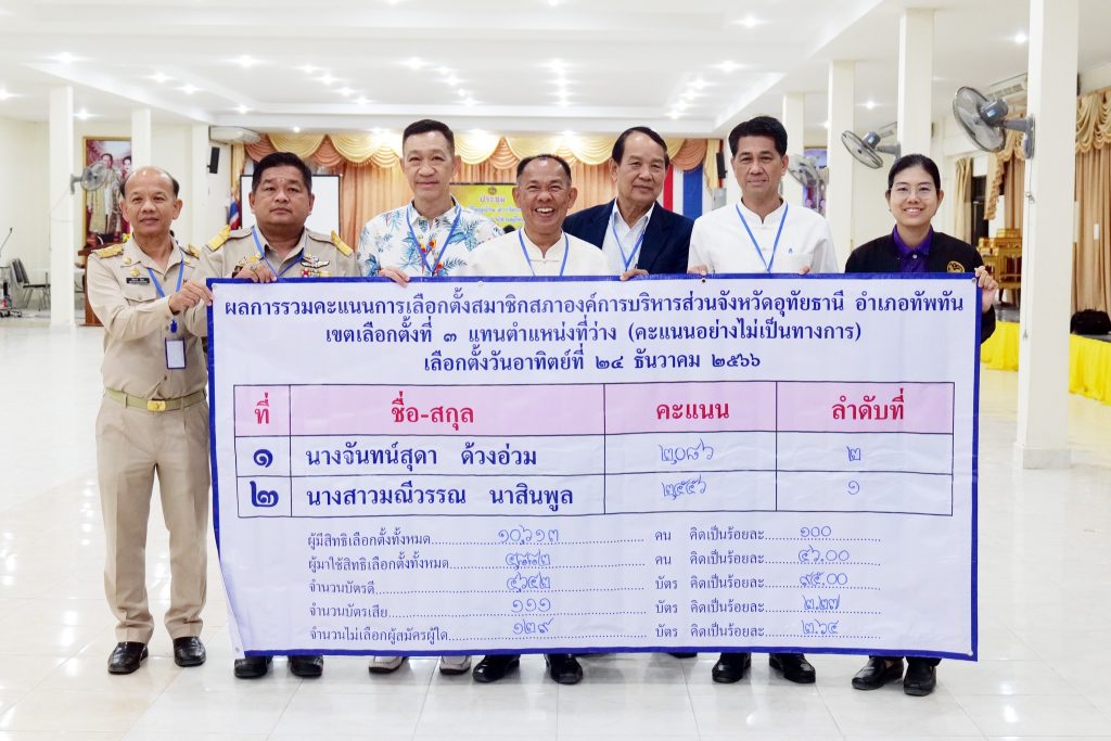 วันที่ 24 ธันวาคม 2566 เวลา 18.00 น. ณ หอประชุมที่ว่าการอำเภอทัพทัน คณะกรรมการประจำหน่วยเลือกตั้ง การเลือกตั้งสมาชิกสภาองค์การบริหารส่วนจังหวัดอุทัยธานี อำเภอทัพทัน เขตเลือกตั้งที่ 3 แทนตำแหน่งที่ว่าง มอบหีบบัตรและผลคะแนนให้กับคณะอนุกรรมการการเลือกตั้งประจำอำเภอทัพทัน เพื่อสรุปและรายงานผลการเลือกตั้งให้คณะกรรมการการเลือกตั้งประจำองค์การบริหารส่วนจังหวัดอุทัยธานีรับทราบ โดยผลการเลือกตั้งอย่างไม่เป็นทางการ นางสาวมณีวรรณ นาสินพูล ผู้สมัครหมายเลข 2 ได้รับเลือกตั้งเป็นสมาชิกสภาองค์การบริหารส่วนจังหวัดอุทัยธานี จากจำนวนผู้มาใช้สิทธิเลือกตั้งทั้งหมด 4,882 คน เป็นบัตรดี 4,642 บัตร บัตรเสีย 111 บัตร และบัตรไม่เลือกผู้สมัครผู้ใด 129 บัตร จากจำนวนผู้มีสิทธิเลือกตั้งเขต 3 อำเภอทัพทัน ทั้งหมด 10,613 คน โดยบรรยากาศการเลือกตั้งและการนับคะแนนเป็นไปด้วยความสงบเรียบร้อย