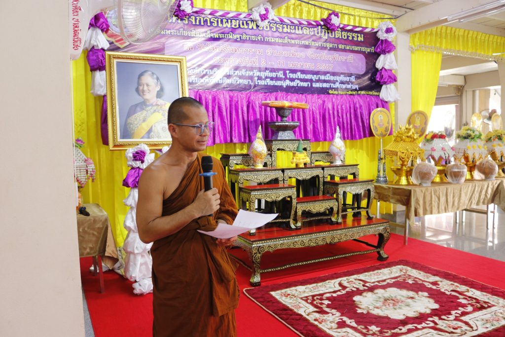 3 เม.ย. 67 เวลา09.00 น. ณ วัดใหม่จันทราราม ตำบลอุทัยใหม่ อำเภอเมืองอุทัยธานี จังหวัดอุทัยธานี นางไพรลิน นุ้ยปรี ที่ปรึกษานายกองค์การบริหารส่วนจังหวัดอุทัยธานี เป็นประธานในพิธีอบรมโครงการเผยแพร่ธรรมะและปฏิบัติธรรม รุ่นที่ 2 โดยมีนายสุรยุทธ รุทระกาญจน์ ผู้อำนวยการกองการศึกษา ศาสนาและวัฒนธรรม กล่าวรายงานฯ