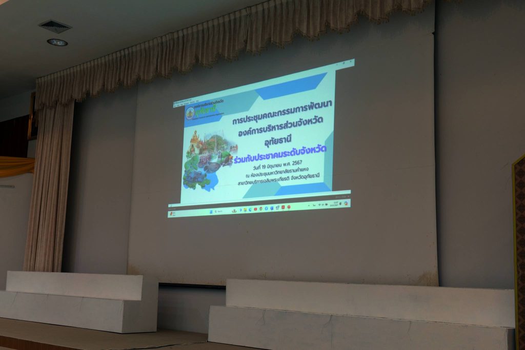 19 มิถุนายน 2567 เวลา 09.00 น. ณ ห้องประชุมมหาวิทยาลัยรามคำแหง สาขาวิทยบริการเฉลิมพระเกียรติ จังหวัดอุทัยธานี องค์การบริหารส่วนจังหวัดอุทัยธานี จัดประชุมประชาคมท้องถิ่นระดับจังหวัด โดยมีนายเผด็จ นุ้ยปรี นายกองค์การบริหารส่วนจังหวัดอุทัยธานี เป็นประธานการประชุม เพื่อให้ทุกภาคส่วนมีส่วนร่วมในการพิจารณาจัดทำแผนพัฒนาท้องถิ่น (พ.ศ. 2566 – 2570) เพิ่มเติม ครั้งที่ 7/2567 ขององค์การบริหารส่วนจังหวัดอุทัยธานี และเป็นการสร้างกระบวนการมีส่วนร่วมในพื้นที่ในการบูรณาการจัดทำแผนพัฒนาฯ โดยมี สมาชิกสภาองค์การบริหารส่วนจังหวัดอุทัยธานี ส่วนราชการที่เกี่ยวข้อง องค์กรปกครองส่วนท้องถิ่นในจังหวัด ผู้ทรงคุณวุฒิ และตัวแทนภาคประชาชน เข้าร่วมประชุมแสดงความคิดเห็น และตอบข้อซักถาม
