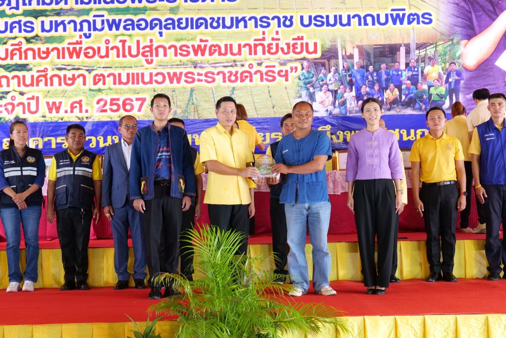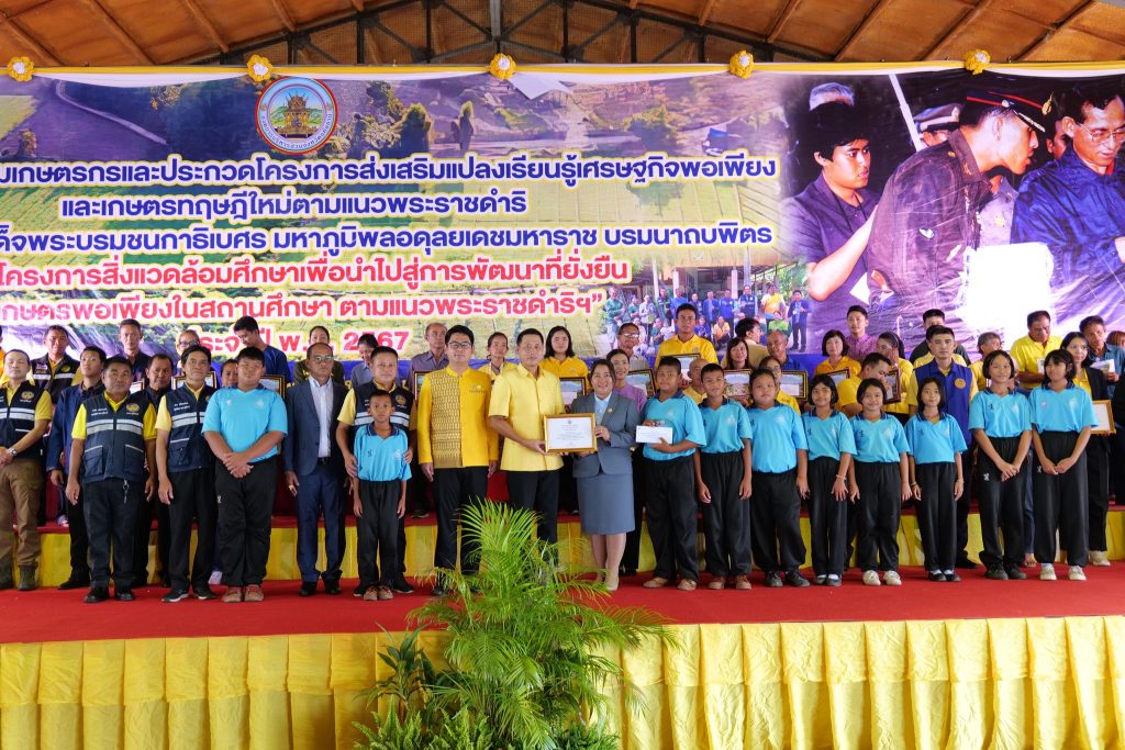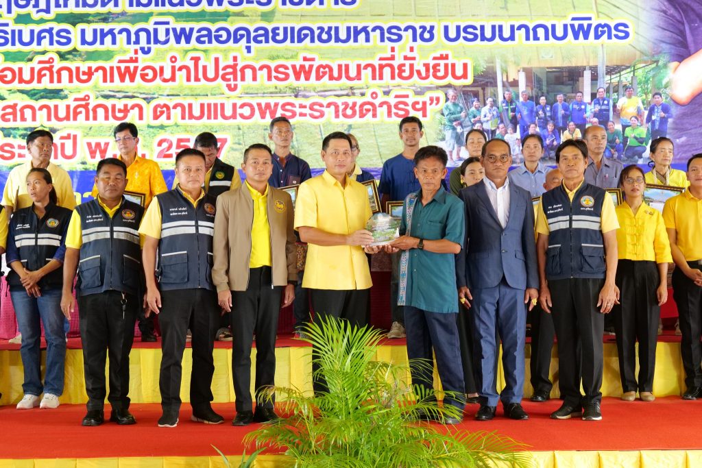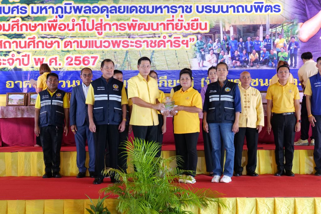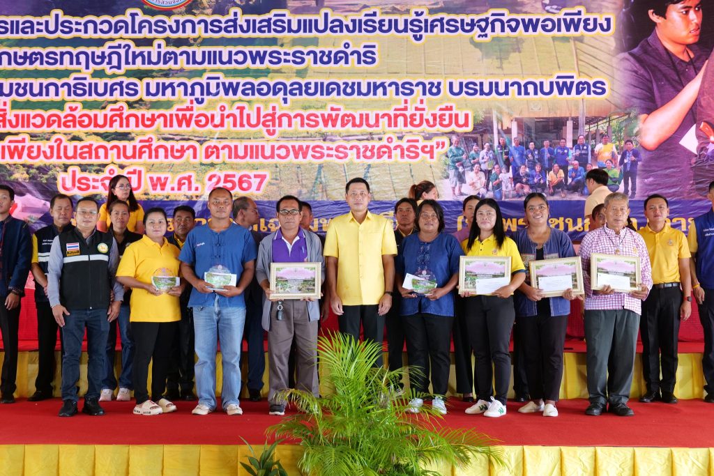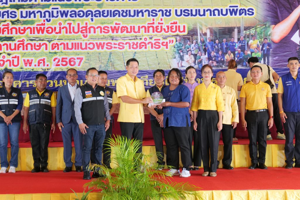 วันนี้(19 กันยายน 2567) เวลา 10.30 น. ณ อาคารสวนน้ำเฉลิมพระเกียรติ (บึงพระชนก) ตำบลเกาะเทโพอำเภอเมืองอุทัยธานี จังหวัดอุทัยธานี นายวิฑูรย์ สิรินุกุล รองผู้ว่าราชการจังหวัดอุทัยธานี เป็นประธานเปิดการฝึกอบรมเกษตรกรและมอบรางวัลการประกวดโครงการส่งเสริมแปลงเรียนรู้เศรษฐกิจพอเพียง และเกษตรทฤษฎีใหม่ตามแนวพระราชดำริของพระบาทสมเด็จพระบรมชนกาธิเบศร มหาภูมิพลอดุลยเดชมหาราช บรมนาถบพิตร โดยแยกเป็น 3 ประเภท คือ ประเภทแบบก้าวหน้า ประเภทมืออาชีพ และประเภทมือใหม่ และมอบรางวัลการประกวดโครงการสิ่งแวดล้อมศึกษาเพื่อนำไปสู่การพัฒนาที่ยั่งยืน “เกษตรพอเพียงในสถานศึกษา ตามแนวพระราชดำริฯ” ประจำปี พ.ศ. 2567 โดยมีนายชรินทร์ ไชยะ ปลัดองค์การบริหารส่วนจังหวัดอุทัยธานี ปฏิบัติหน้าที่นายกองค์การบริหารส่วนจังหวัดอุทัยธานี กล่าวรายงานฯ มีคณะสมาชิกสภาองค์การบริหารส่วนจังหวัดอุทัยธานี หัวหน้าส่วนราชการที่เกี่ยวข้อง ผู้นำท้องถิ่นของแต่ละอำเภอ ครู นักเรียน และเกษตรกร เข้าร่วมกิจกรรม โดยผู้เข้าร่วมกิจกรรมจะได้รับตัวอย่างสารปรับปรุงดินชนิดเม็ด น้ำหมักชีวภาพ จุลินทรีย์สังเคราะห์แสง และกล้าหญ้าแฝก ไปทดลองใช้ตามปรัชญาเศรษฐกิจพอเพียง เกษตรทฤษฎีใหม่ตามแนวพระราชดำริ