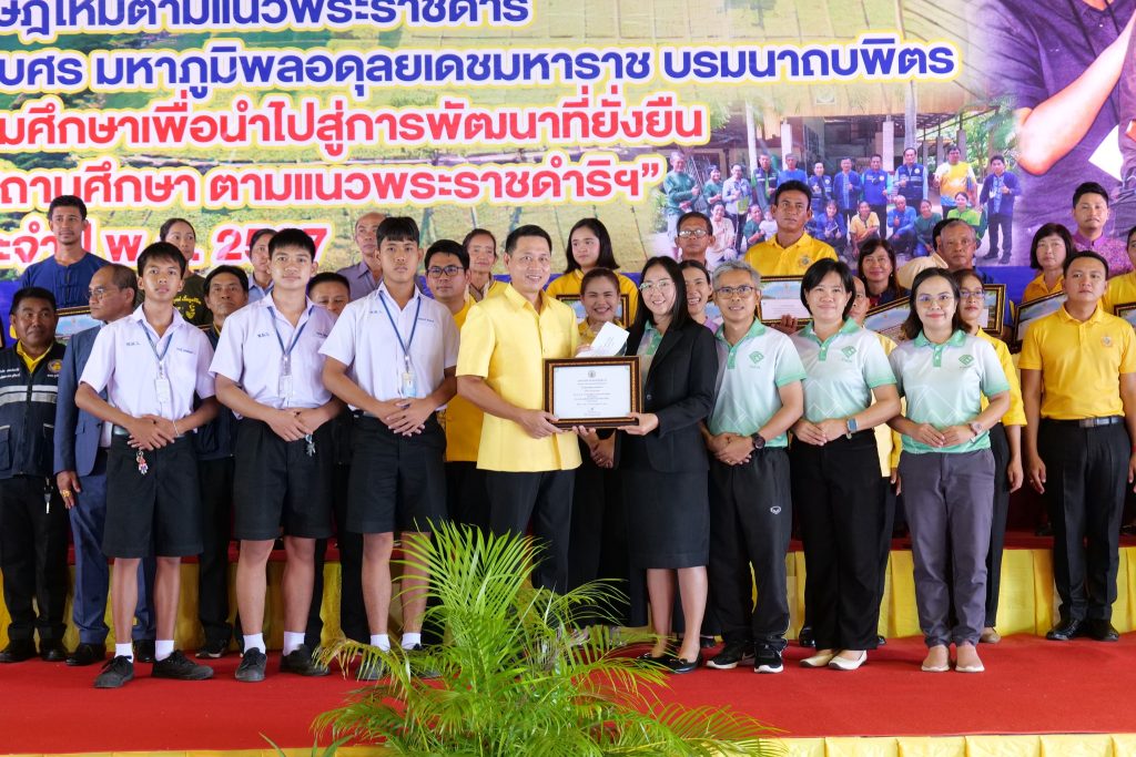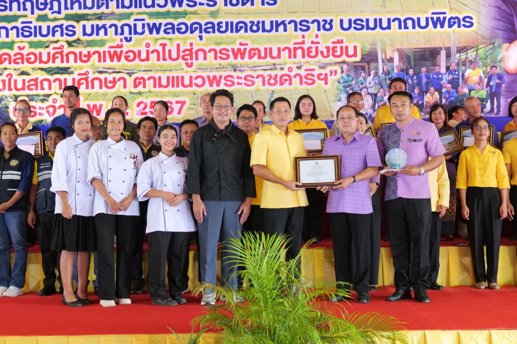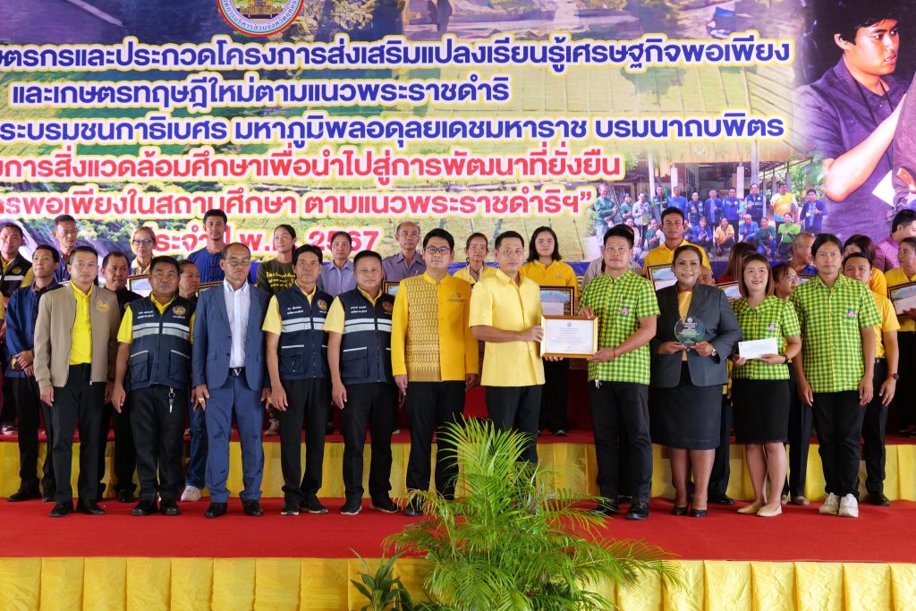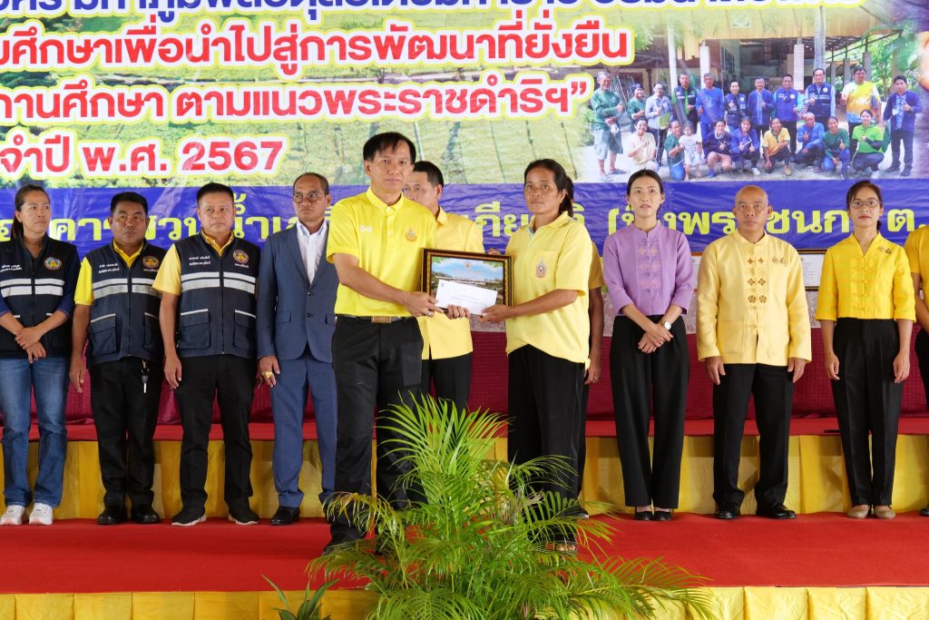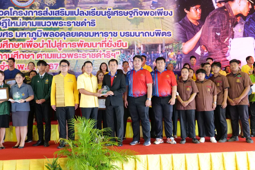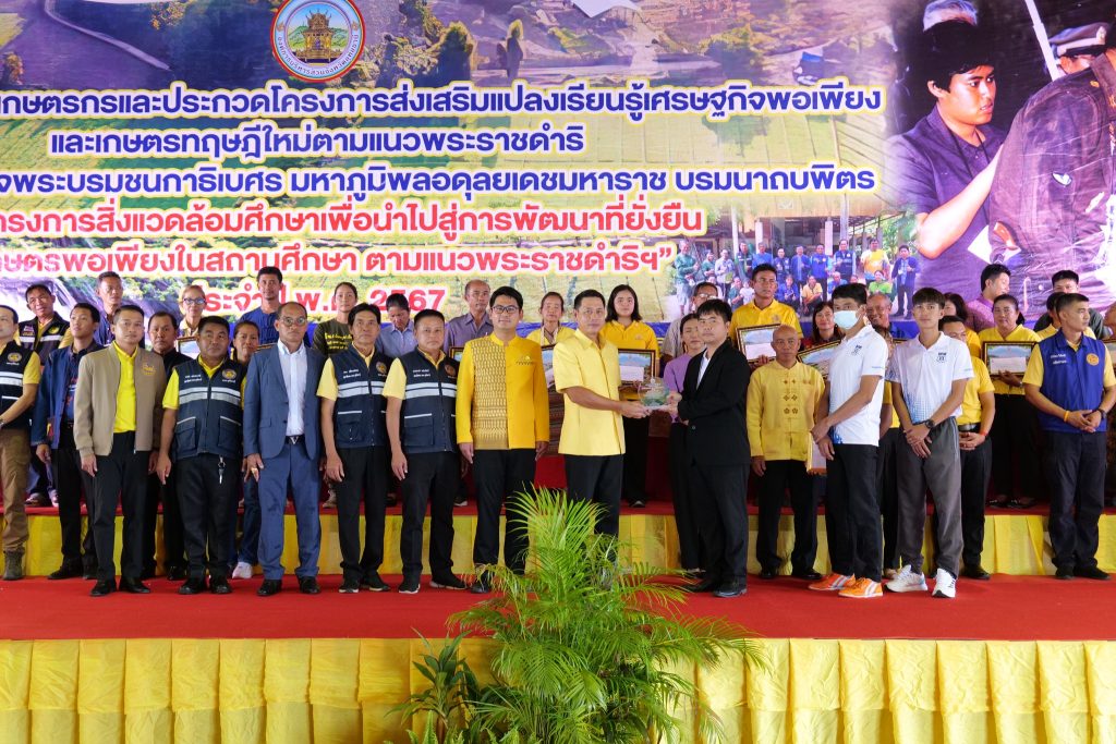 วันนี้(19 กันยายน 2567) เวลา 10.30 น. ณ อาคารสวนน้ำเฉลิมพระเกียรติ (บึงพระชนก) ตำบลเกาะเทโพอำเภอเมืองอุทัยธานี จังหวัดอุทัยธานี นายวิฑูรย์ สิรินุกุล รองผู้ว่าราชการจังหวัดอุทัยธานี เป็นประธานเปิดการฝึกอบรมเกษตรกรและมอบรางวัลการประกวดโครงการส่งเสริมแปลงเรียนรู้เศรษฐกิจพอเพียง และเกษตรทฤษฎีใหม่ตามแนวพระราชดำริของพระบาทสมเด็จพระบรมชนกาธิเบศร มหาภูมิพลอดุลยเดชมหาราช บรมนาถบพิตร โดยแยกเป็น 3 ประเภท คือ ประเภทแบบก้าวหน้า ประเภทมืออาชีพ และประเภทมือใหม่ และมอบรางวัลการประกวดโครงการสิ่งแวดล้อมศึกษาเพื่อนำไปสู่การพัฒนาที่ยั่งยืน “เกษตรพอเพียงในสถานศึกษา ตามแนวพระราชดำริฯ” ประจำปี พ.ศ. 2567 โดยมีนายชรินทร์ ไชยะ ปลัดองค์การบริหารส่วนจังหวัดอุทัยธานี ปฏิบัติหน้าที่นายกองค์การบริหารส่วนจังหวัดอุทัยธานี กล่าวรายงานฯ มีคณะสมาชิกสภาองค์การบริหารส่วนจังหวัดอุทัยธานี หัวหน้าส่วนราชการที่เกี่ยวข้อง ผู้นำท้องถิ่นของแต่ละอำเภอ ครู นักเรียน และเกษตรกร เข้าร่วมกิจกรรม โดยผู้เข้าร่วมกิจกรรมจะได้รับตัวอย่างสารปรับปรุงดินชนิดเม็ด น้ำหมักชีวภาพ จุลินทรีย์สังเคราะห์แสง และกล้าหญ้าแฝก ไปทดลองใช้ตามปรัชญาเศรษฐกิจพอเพียง เกษตรทฤษฎีใหม่ตามแนวพระราชดำริ