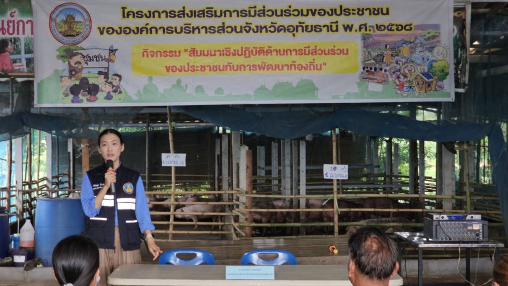 วันที่ 13 มิถุนายน 2568 นายนิวัฒน์ ภาตะนันท์ รองนายกองค์การบริหารส่วนจังหวัดอุทัยธานี เป็นประธานพิธีเปิดโครงการส่งเสริมการมีส่วนร่วมของประชาชน ขององค์การบริหารส่วนจังหวัดอุทัยธานี ประจำปีงบประมาณ พ.ศ.2568 กิจกรรม “สัมมนาเชิงปฏิบัติด้านการมีส่วนร่วมของประชาชนกับการพัฒนาท้องถิ่น“ และได้รับเกียรติจากสมาชิกสภาองค์การบริหารส่วนจังหวัดอุทัยธานี เขต 4 อำเภอลานสัก เลขานุการนายกองค์การบริหารส่วนจังหวัดอุทัยธานี ปลัดอำเภอ เข้าร่วมพิธีเปิดฯ โดยนายเกียรติศักดิ์ มาภักดี หัวหน้าฝ่ายส่งเสริมการมีส่วนร่วมของประชาชน รักษาราชการแทน เลขานุการองค์การบริหารส่วนจังหวัด กล่าวรายงานวัตถุประสงค์ของการดำเนินโครงการ โดยส่งเสริมให้ผู้เข้ารับการอบรมในโครงการสามารถแลกเปลี่ยนความคิด เพื่อนำข้อสรุปไปพัฒนาท้องถิ่นของตนเอง ณ ศูนย์เรียนรู้เศรษฐกิจพอเพียงบ้านโกรกลึก ตำบลน้ำรอบ อำเภอลานสัก จังหวัดอุทัยธานี