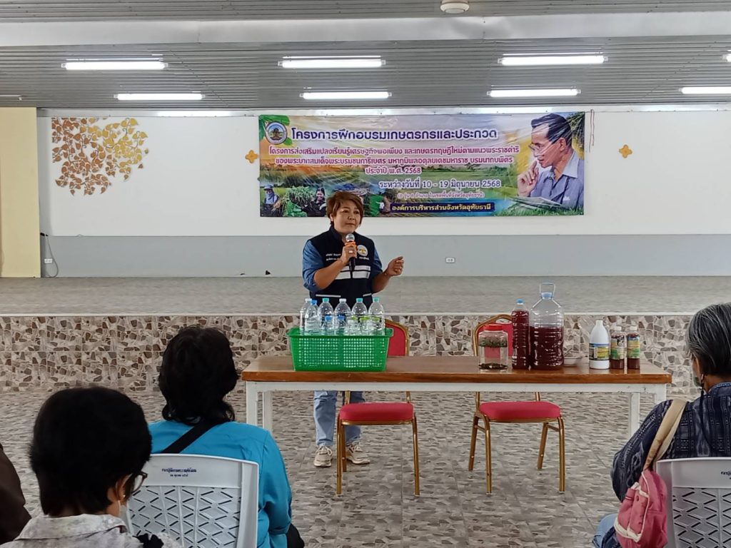 วันที่ 13 มิถุนายน 2568 นายตริณณุพล นุ้ยปรี รองนายกองค์การบริหารส่วนจังหวัดอุทัยธานี เป็นประธานในพิธีเปิดโครงการส่งเสริมแปลงเรียนรู้เศรษฐกิจพอเพียง และเกษตรทฤษฎีใหม่ตามแนวพระราชดำริของพระบาทสมเด็จพระบรมชนกาธิเบศร มหาภูมิพลอดุลยเดชมหาราช บรมนาถบพิตร ประจำปีงบประมาณ พ.ศ. ๒๕๖๘ (วันที่ 4)และได้รับเกียรติจากสมาชิกสภาองค์การบริหารส่วนจังหวัดอุทัยธานีเขตอำเภอหนองฉาง ผู้นำชุมชนและเกษตรกร เข้าร่วมกิจกรรม ณ.ศาลาโดมวัดหนองขุนชาติ อำเภอหนองฉาง จังหวัดอุทัยธานี โดยนายพงศ์ทัย วัฒนาอุดมวงศ์ ผู้อำนวยการกองช่าง กล่าวรายงานวัตถุประสงค์ของการดำเนินโครงการ ให้แก่เกษตรกรผู้เข้าร่วมโครงการ ได้ทราบถึงหลักเกณฑ์การประกวดโครงการส่งเสริมแปลงเรียนรู้เศรษฐกิจพอเพียงและเกษตรทฤษฎีใหม่ตามแนวพระราชดำริ ฯ ฝึกอบรมภาคความรู้ ในการการขยายเชื้อจุลินทรีย์สังเคราะห์แสง การขยายแหนแดง จาก ผู้ช่วยศาสตราจารย์ ดร.หฤษฏ์ นิ่มรักษา อาจารย์ประจำสาขาวิชาเทคโนโลยี การเกษตร คณะวิทยาศาสตร์ มหาวิทยาลัยรามคำแหง เป็นวิทยากรให้ความรู้พร้อมรับมอบตัวอย่างสารปรับปรุงดิน น้ำหมักชีวภาพ จุลินทรีย์สังเคราะห์แสง เพื่อนำไปใช้ในการดำเนินชีวิตตามแนวทางเศรษฐกิจพอเพียง และเกษตรทฤษฎีใหม่ ต่อไป