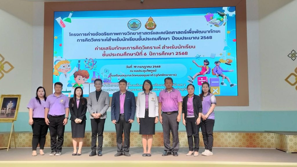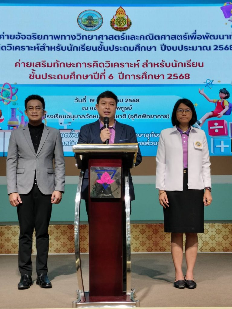 วันที่ 19 กรกฎาคม 2568 นายตริณณุพล นุ้ยปรี รองนายกองค์การบริหารส่วนจังหวัดอุทัยธานี รักษาราชการแทนนายกองค์การบริหารส่วนจังหวัดอุทัยธานี เป็นประธานในพิธีเปิดโครงการค่ายอัจฉริยภาพทางวิทยาศาสตร์และคณิตศาสตร์ เพื่อพัฒนาทักษะการคิดวิเคราะห์สำหรับนักเรียนชั้นประถมศึกษา ประจำปีงบประมาณ พ.ศ. 2568 ณ หอประชุมไพฑูรย์ โรงเรียนอนุบาลวัดหนองขุนชาติ โดยในการจัดกิจกรรมในครั้งนี้ องค์การบริหารส่วนจังหวัดอุทัยธานี ได้อุดหนุนงบประมาณให้แก่สำนักงานเขตพื้นที่การศึกษาประถมศึกษาอุทัยธานี เขต 2 ดำเนินการเพื่อพัฒนาทักษะการคิดวิเคราะห์ การเรียนรู้ให้แก่นักเรียนชั้นประถมศึกษา เพื่อการยกระดับผลสัมฤทธิ์ทางการเรียนของนักเรียนให้สูงขึ้น