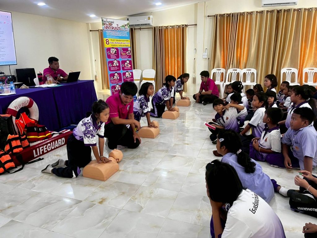 วันที่ 22 สิงหาคม 2568 ฝ่ายป้องกันและบรรเทาสาธารณภัย องค์การบริหารส่วนจังหวัดอุทัยธานี นำโดย นางสาวยวาลัย ฉวีจันทร์ ตำแหน่งเจ้าพนักงานป้องกันและบรรเทาสาธารณภัยปฏิบัติงาน และคณะ ได้รับเกียรติจาก โรงเรียนบ้านคลองข่อย ต.ไผ่เขียว อ.สว่างอารมณ์ จ.อุทัยธานี เชิญไปเป็นวิทยากรดำเนินการจัดฝึกอบรมการป้องกันเด็กจมน้ำ การช่วยเหลือตนเองและผู้อื่นเมื่อประสบภัยและเรียนรู้การเอาตัวรอดจากภัยอันตรายใกล้ตัวต่างๆที่อาจจะเกิดขึ้นกับนักเรียน