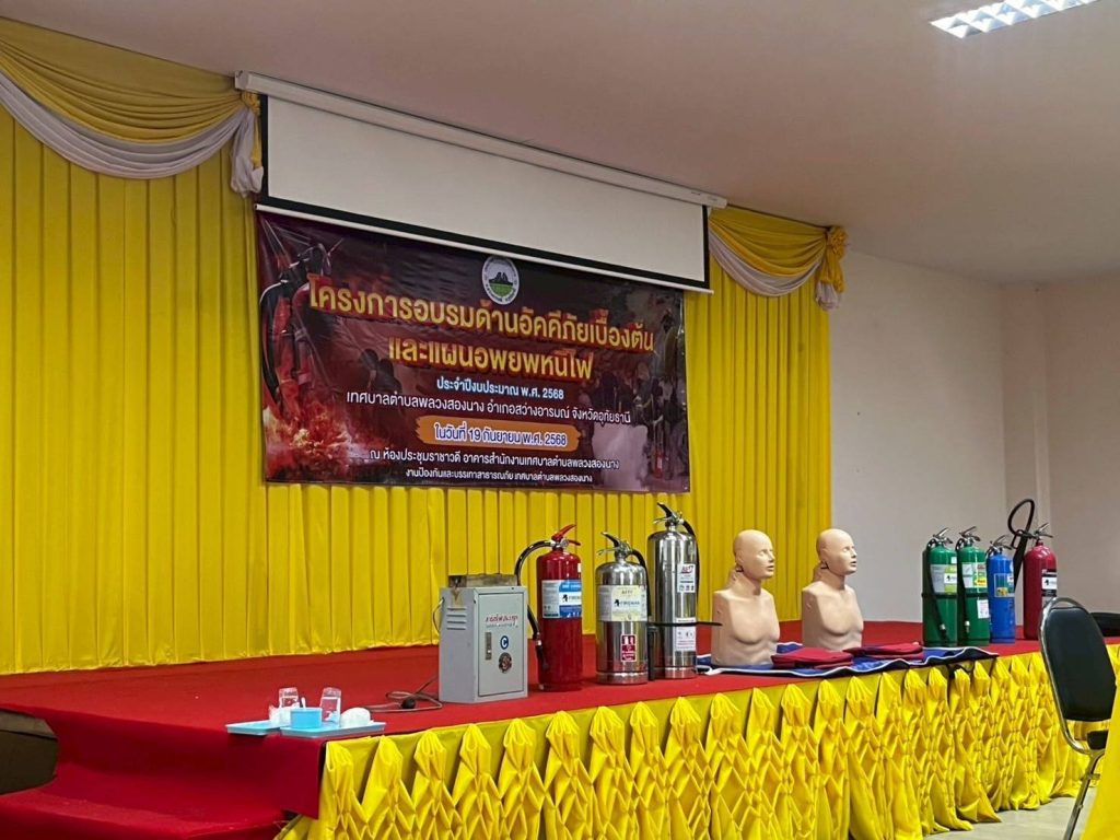 วันศุกร์ที่ 19 กันยายน 2568 หน่วยให้บริการฝึกอบรมการดับเพลิงขั้นต้น การฝึกซ้อมดับเพลิงและฝึกซ้อมอพยพหนีไฟ องค์การบริหารส่วนจังหวัดอุทัยธานี นำโดย ว่าที่ ร.ต ภานุวัฒน์ หนองคาย ตำแหน่ง นักป้องกันและบรรเทาสาธารณภัยชำนาญการ และคณะ จากฝ่ายป้องกันและบรรเทาสาธารณภัย อุทัยธานี ฝึกอบรมให้กับ ข้าราชการและพนักงานจ้าง เทศบาลตำบลพลวงสองนาง อำเภอสว่างอารมณ์ จังหวัดอุทัยธานี ในโครงการอบรมด้านอัคคีภัยเบื้องต้นและแผนอพยพหนีไฟโดยมีวัตถุประสงค์เพื่อเป็นการลดความเสี่ยงต่อเรื่องดังกล่าวรวมทั้งเพื่อความปลอดภัยในการทำงาน และให้สามารถดำเนินการป้องกันและแก้ไขปัญหาการเกิดอัคคีภัยได้อย่างรวดเร็วและมีประสิทธิภาพ ประจำปีงบประมาณ พ.ศ.2568 โดยนายปฏิพลวิชญ์ เกตุวิริยะกรรม นายกเทศมนตรีตำบลพลวงสองนาง เป็นประธานเปิดโครงการดังกล่าว