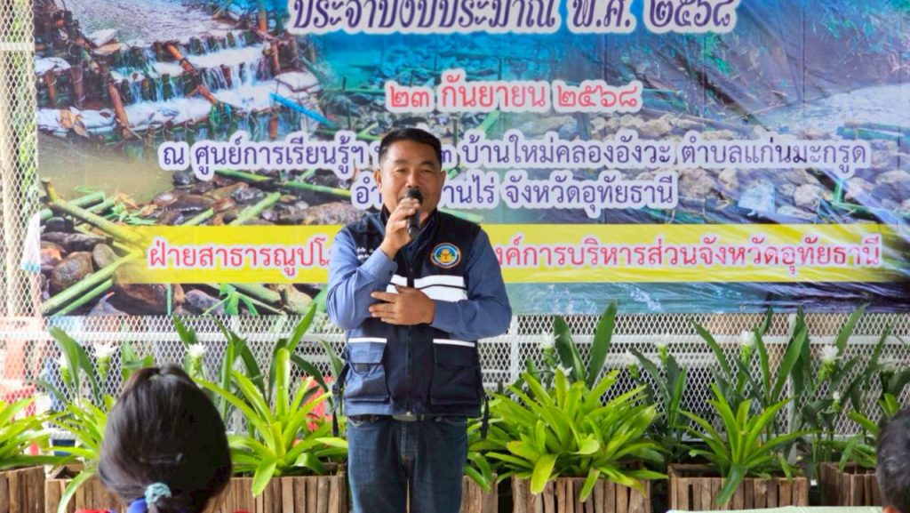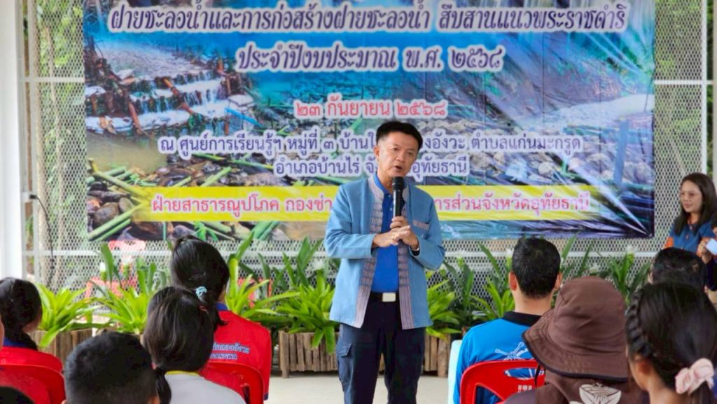 23 กันยายน 2568 เวลา 10.00 น. ณ ศูนย์การเรียนรู้บริเวณหมู่ที่ 3 บ้านใหม่คลองอังวะ ตำบลแก่นมะกรูด อำเภอบ้านไร่ จังหวัดอุทัยธานี นายตริณณุพล นุ้ยปรี รองนายกองค์การบริหารส่วนจังหวัดอุทัยธานี เป็นประธานเปิดโครงการฝึกอบรมเชิงปฏิบัติการให้ความรู้เกี่ยวกับฝายชะลอน้ำ และการก่อสร้างฝายชะลอน้ำสืบสานแนวพระราชดำริ ประจำปีงบประมาณ 2568 โดยมีนายชรินทร์ ไชยะ ปลัดองค์การบริหารส่วนจังหวัดอุทัยธานี กล่าวรายงานฯ การฝึกอบรมในครั้งนี้ได้รับเกียรติจากนายเผด็จ นุ้ยปรี นายกองค์การบริหารส่วนจังหวัดอุทัยธานี เป็นวิทยากรบรรยายให้ความรู้เกี่ยวกับฝายชะลอความชุ่มชื้น อันเนื่องมาจากพระราชดำริ ของพระบาทสมเด็จพระบรมชนกาธิเบศร มหาภูมิพลอดุลยเดชมหาราช บรมนาถบพิตร โดยมีกิจกรรมปลูกหญ้าแฝก ปลูกต้นไม้ และกิจกรรมการก่อสร้างฝายชะลอน้ำ กิจกรรมในครั้งนี้มีนายสิรภพ นิยมเดช นายอำเภอบ้านไร่ นายจำรัส เลิศประวัติ ส.อบจ.อุทัยธานี เขต 2 อำเภอบ้านไร่ นางสาวจินตนา อินมณี รองปลัดองค์การบริหารส่วนจังหวัดอุทัยธานี หัวหน้าส่วนราชการ ผู้นำท้องถิ่น และคณะครูนักเรียนบ้านใหม่คลองอังวะ ร่วมกิจกรรมฯ