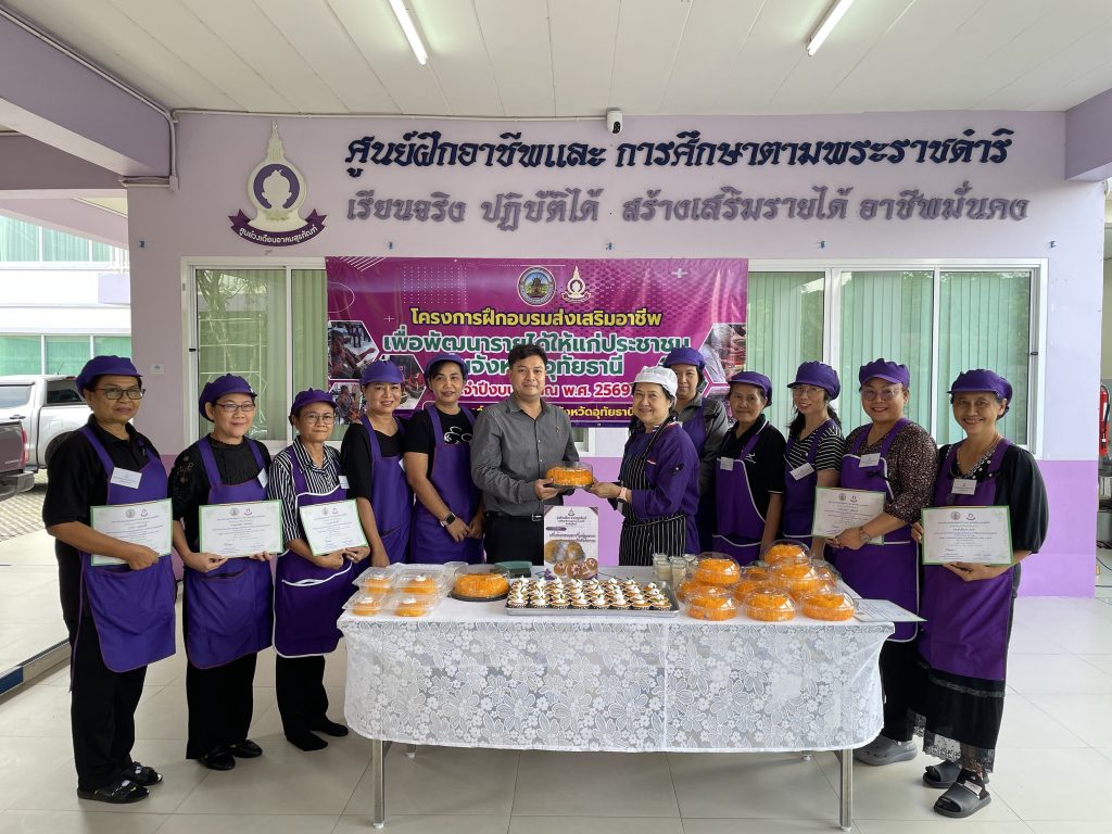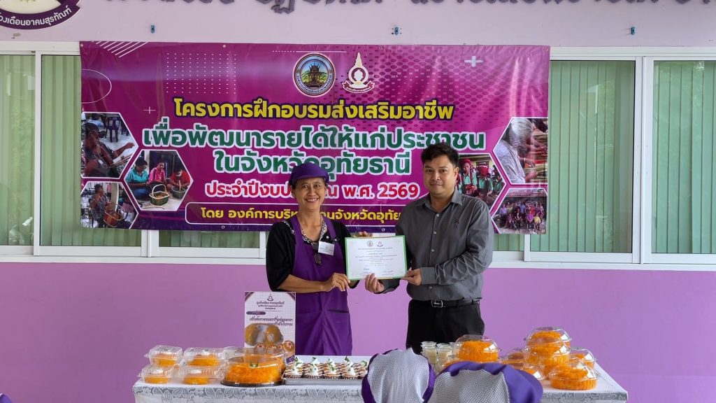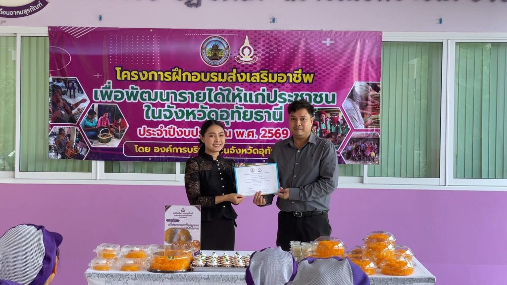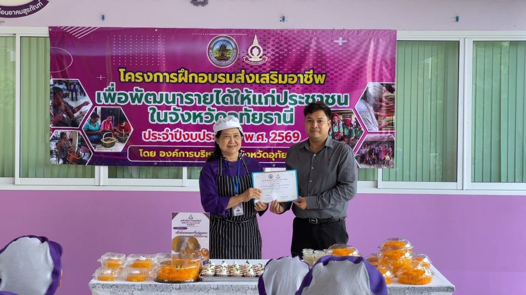 ▪️นายตริณณุพล นุ้ยปรี รองนายกองค์การบริหารส่วนจังหวัดอุทัยธานี รักษาราชการแทน นายกองค์การบริหารส่วนจังหวัดอุทัยธานี เป็นประธานมอบเกียรติบัตรแก่ผู้สำเร็จโครงการอบรมส่งเสริมอาชีพเพื่อพัฒนารายได้ให้แก่ประชาชนในจังหวัดอุทัยธานี ประจำปีงบประมาณ พ.ศ. ๒๕๖๙ หลักสูตรเค้กฝอยทองมะพร้าวอ่อนลาวาและเค้กส้มโบราณ โดยมีนางอุมาพร แขดอน วิทยากร และนางสาวจิราพร ชินภัคดี เป็นวิทยากรผู้ช่วยในหลักสูตรนี้ ณ ศูนย์วงเดือน อาคมสุรทัณฑ์