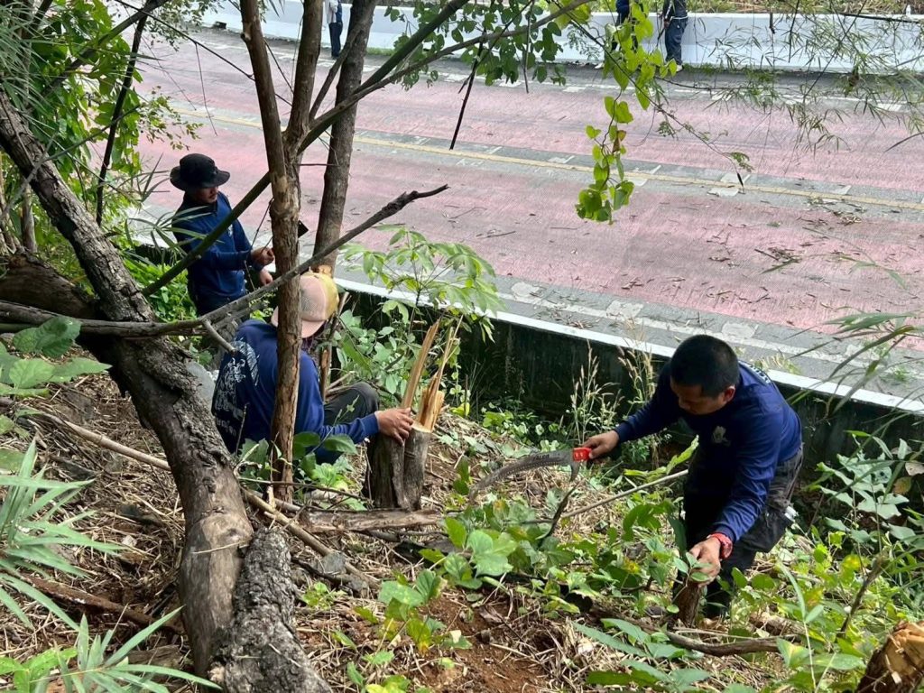นายตริณณุพล นุ้ยปรี รองนายกองค์การบริหารส่วนจังหวัด รักษาราชการแทนนายกองค์การบริหารส่วนจังหวัดอุทัยธานี จึงมอบหมายให้ นายกำพล ศรีพันธ์ หัวหน้าฝ่ายป้องกันและะบรรเทาสาธารณภัย รักษาราชการแทน ผู้อำนวยการกองป้องกันและบรรเทาสาธารณภัย นำเจ้าหน้าที่ ดำเนินการตัดต้นไม้ที่บดบังภูมิทัศน์การเดินรถของนักท่องเที่ยว