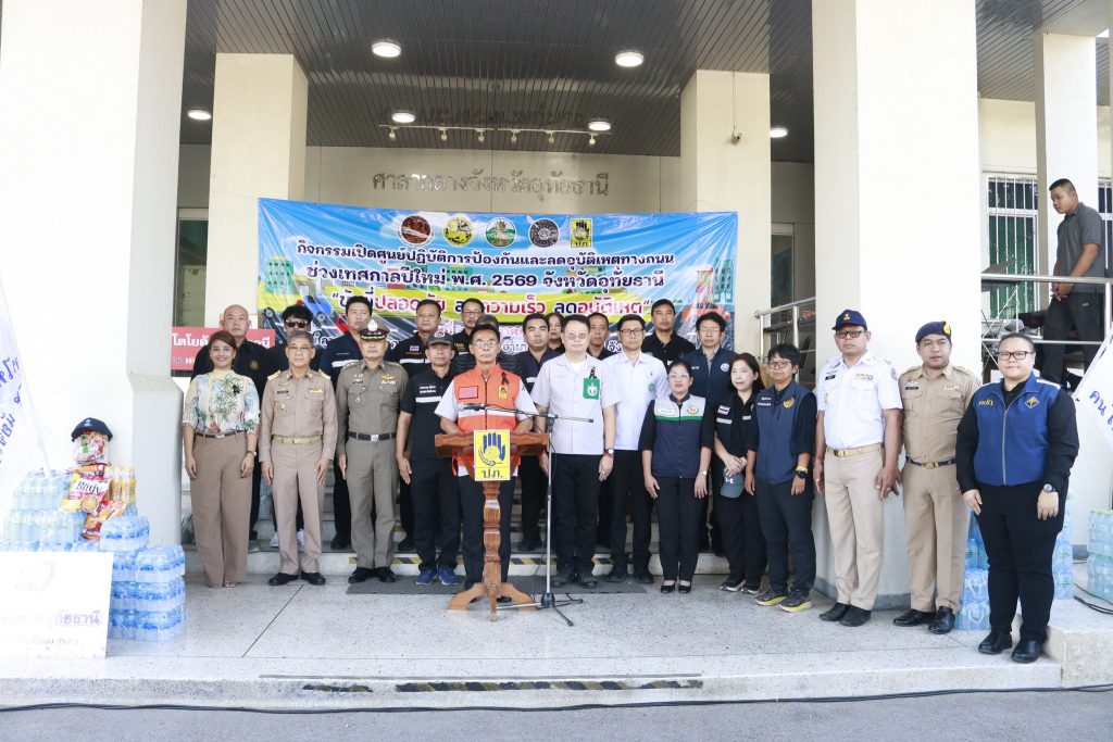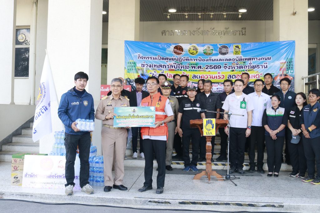 วันที่ 24 ธันวาคม 2568 เวลา 14.00 น. นายสมบัติ ไตรศักดิ์ ผู้ว่าราชการจังหวัดอุทัยธานีเป็นประธานในพิธีเปิดกิจกรรมเปิดศูนย์ปฏิบัติการป้องกันและลดอุบัติเหตุทางถนนช่วงเทศกาลปีใหม่ พ.ศ.2569 จังหวัดอุทัยธานี “ขับขี่ปลอดภัย ลดความเร็ว ลดอุบัติเหตุ”พร้อมด้วยหัวหน้าส่วนราชการ นายอำเภอ ผู้กำกับการ ผู้อำนวยการโรงพยาบาล ผู้บริหารองค์กรปกครองส่วนท้องถิ่น มูลนิธิกู้ภัยอุทัยธานี มูลนิธิร่วมใจอุทัยธานี ชมรมกู้ภัยเมืองพระชนกจักรี โดยมีว่าที่ร้อยตรี ทนงศักดิ์ สุวรรณเตมีย์ หัวหน้าสำนักงานป้องกันและบรรเทาสาธารณภัยจังหวัดอุทัยธานีกล่าวรายงานการจัดกิจกรรมฯ โดยองค์การบริหารส่วนจังหวัดอุทัยธานีมีนายนิวัฒน์ ภาตะนันท์ รองนายกองค์การบริหารส่วนจังหวัดอุทัยธานีร่วมพิธีเปิดกิจกรรมฯ ณ ลานหน้าศาลากลางจังหวัดอุทัยธานี
