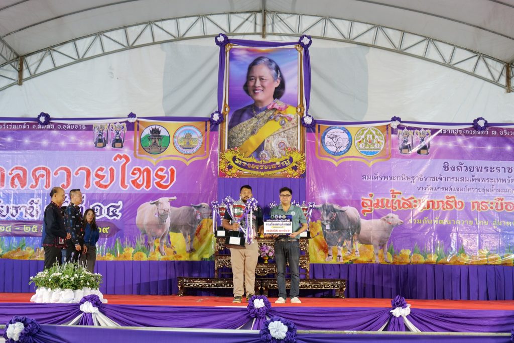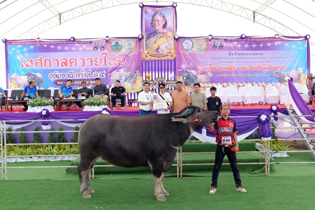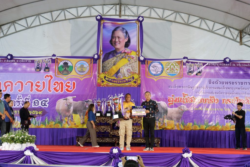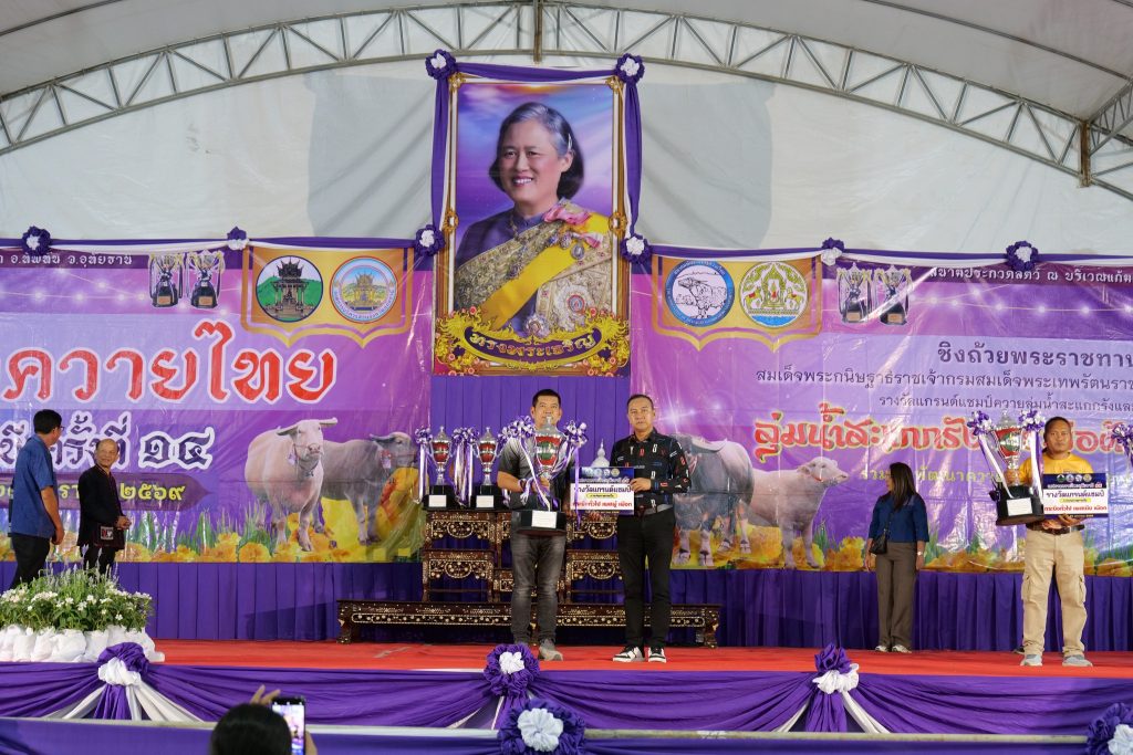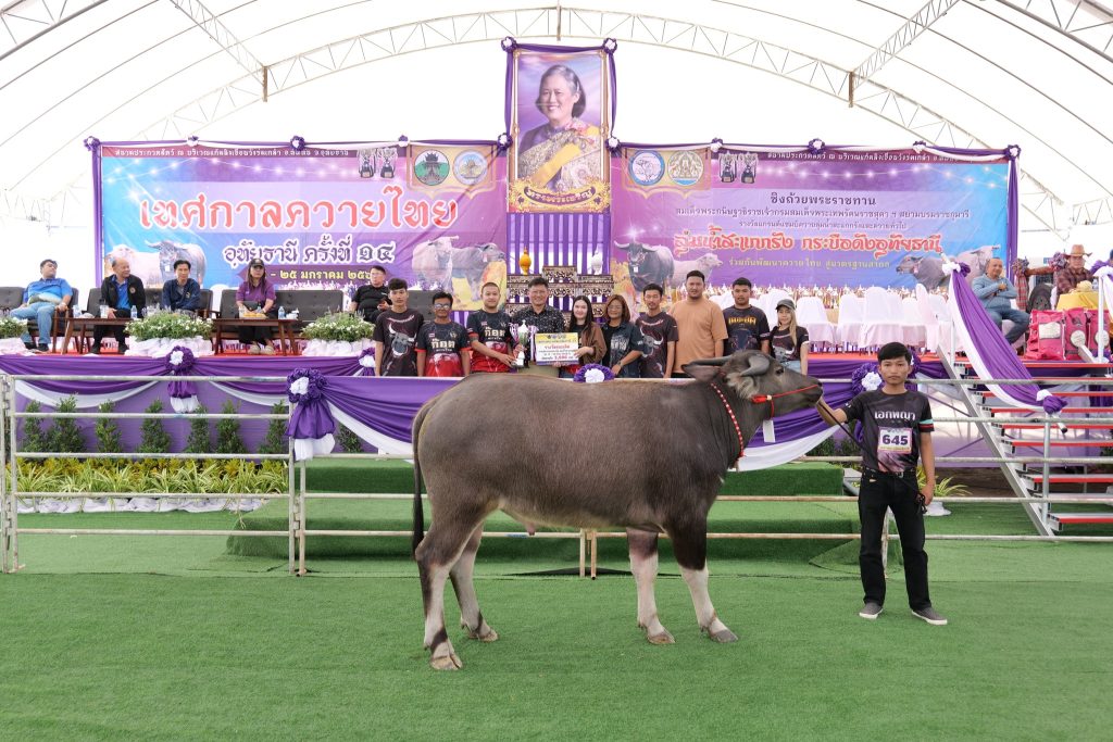 เมื่อวันที่ 25 มกราคม 2569 ณ บริเวณแก้มลิงเขื่อนวังร่มเกล้า จังหวัดอุทัยธานี ร่วมกับองค์การบริหารส่วนจังหวัดอุทัยธานี และสมาคมพัฒนาพันธุ์ควายไทย จัดงาน “เทศกาลควายไทย อุทัยธานี” ครั้งที่ 14 จัดประกวดกระบือประเภททั่วไป (เฉพาะกระบือทั่วประเทศไทย) และการประกวดกระบือแกรนด์แชมป์ (Grand Champion) ชิงถ้วยพระราชทานฯ โดยพิธีมอบรางวัลได้รับเกียรติจากนายตริณณุพล นุ้ยปรี รองนายกองค์การบริหารส่วนจังหวัดอุทัยธานี นายกฤษฎา ซักเซ็ค นายกสมาคมพัฒนาพันธุ์ควายไทย นายธนาคิม เพ็ชรวัต รองประธานสภาองค์การบริหารส่วนจังหวัดอุทัยธานี นางสาวอรวรรณ ทองหล่อเลิศ เลขานุการนายกองค์การบริหารส่วนจังหวัดอุทัยธานี นายชรินทร์ ไชยะ ปลัดองค์การบริหารส่วนจังหวัดอุทัยธานี นางสาวจินตนา อินมณี รองปลัดองค์การบริหารส่วนจังหวัดอุทัยธานี ร่วมมอบพิธีรางวัลฯ