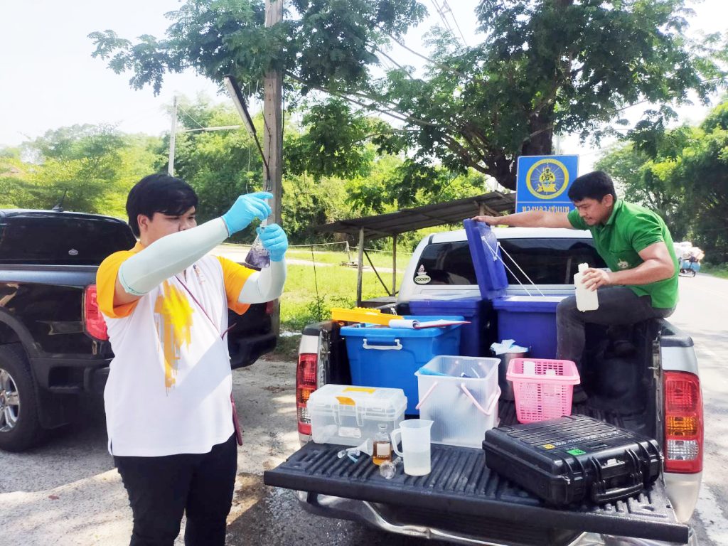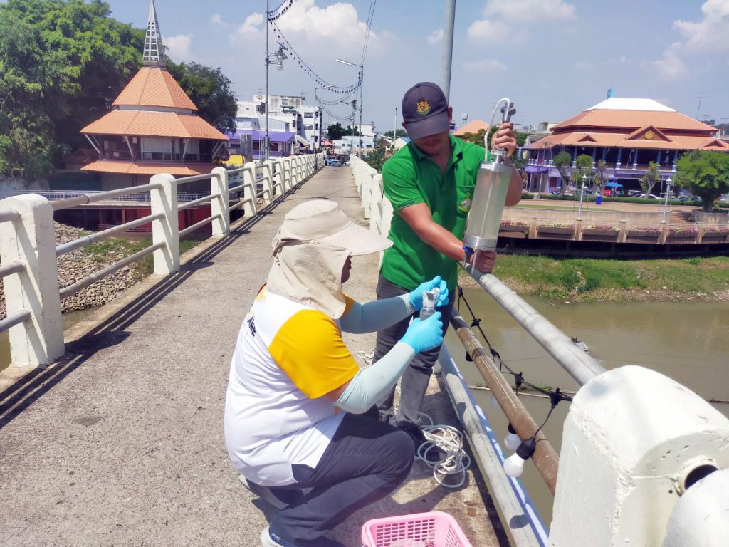 จุดที่ 5 หน้าตลาดสด ตำบลอุทัยใหม่ อำเภอเมืองฯ จังหวัดอุทัยธานี คุณภาพน้ำเสื่อมโทรม มีค่า WQI = 53.77