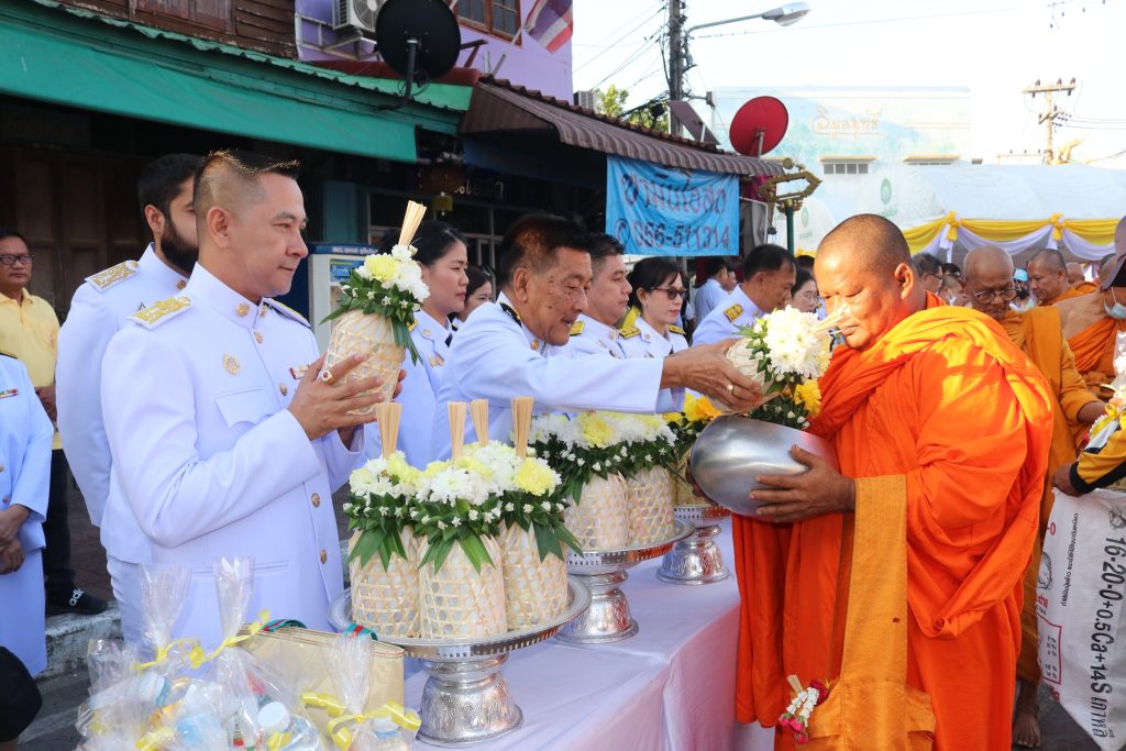 ร่วมพิธีเจริญพระพุทธมนต์และทำบุญตักบาตรถวายเป็นพระราชกุศล เนื่องในวันคล้ายวันพระบรมราชสมภพ พระบาทสมเด็จพระบรมชนกาธิเบศร มหาภูมิพลอดุลยเดชมหาราช บรมนาถบพิตร วันชาติ และวันพ่อแห่งชาติ 5 ธันวาคม 2566 องค์การบริหารส่วนจังหวัดอุทัยธานี โดยมีนายเสวก พุทธรักษา รองนายกองค์การบริหารส่วนจังหวัด ณ บริเวณวงเวียนห้าแยกวิทยุ
