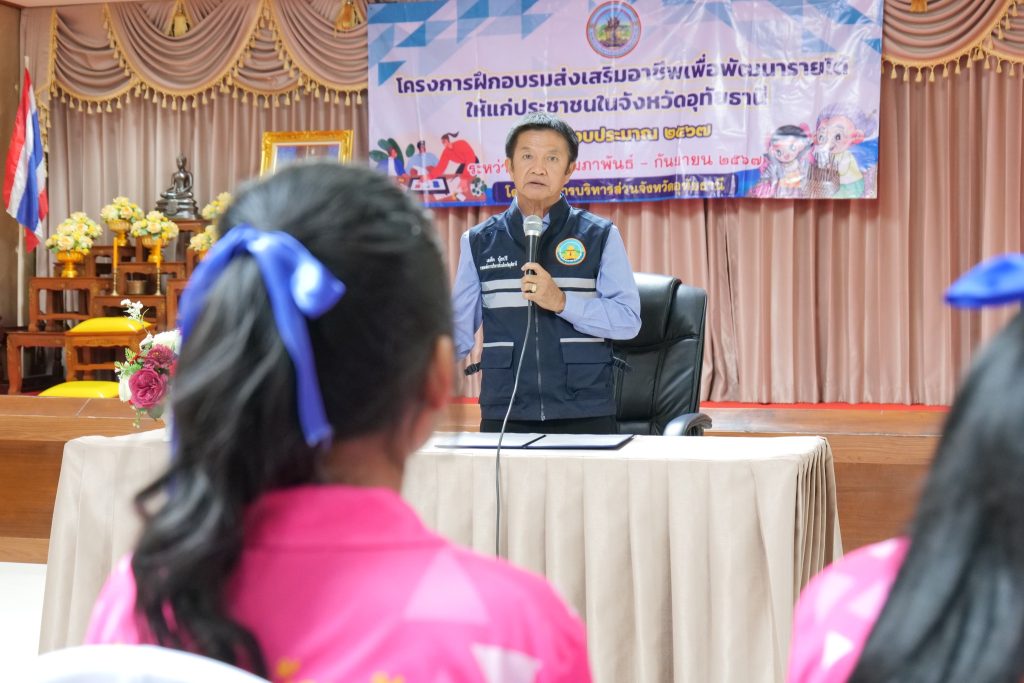 นายเผด็จ นุ้ยปรี เป็นประธาน และร่วมพิธีเปิดโครงการฝึกอบรมส่งเสริมอาชีพเพื่อพัฒนารายได้ให้แก่ประชาชนในจังหวัดอุทัยธานี ประจำปี 2567 กิจกรรมที่ 2 การอบรมเพิ่มทักษะอาชีพให้แก่กลุ่มนักเรียนโรงเรียนขยายโอกาสทางการศึกษา และโรงเรียนมัธยมศึกษาในจังหวัดอุทัยธานีณ ศูนย์แสดงและจำหน่ายสินค้าหนึ่งตำบล หนึ่งผลิตภัณฑ์ (OTOP) เมืองพระชนกจักรี